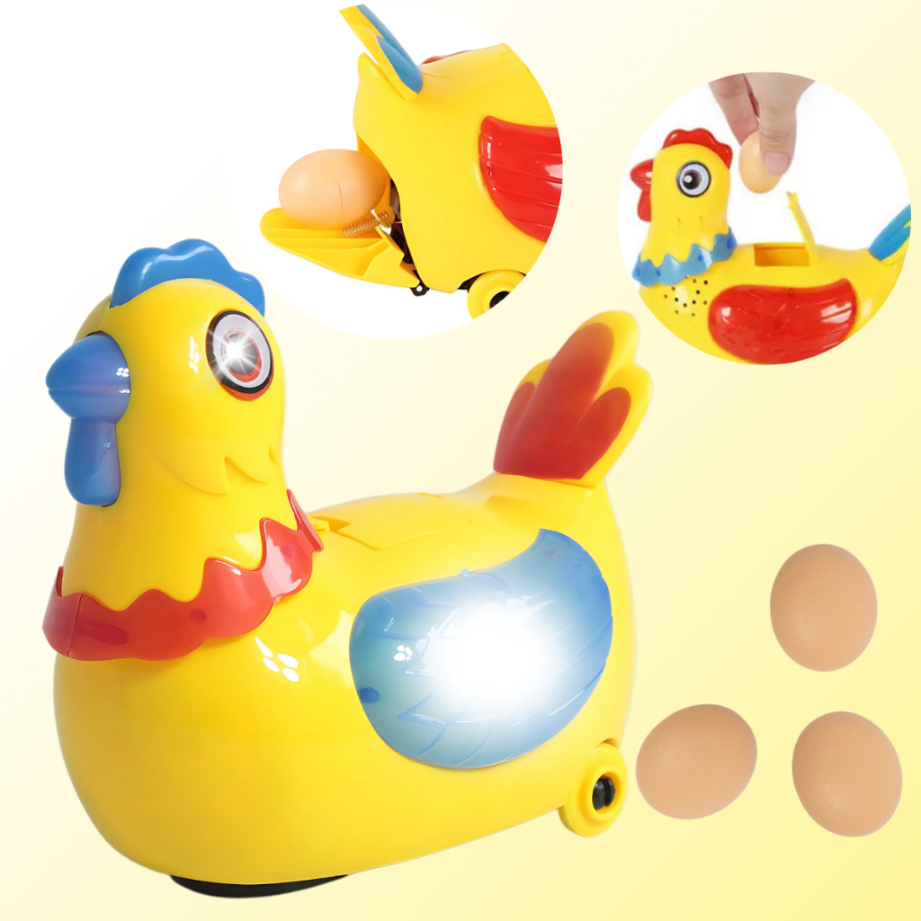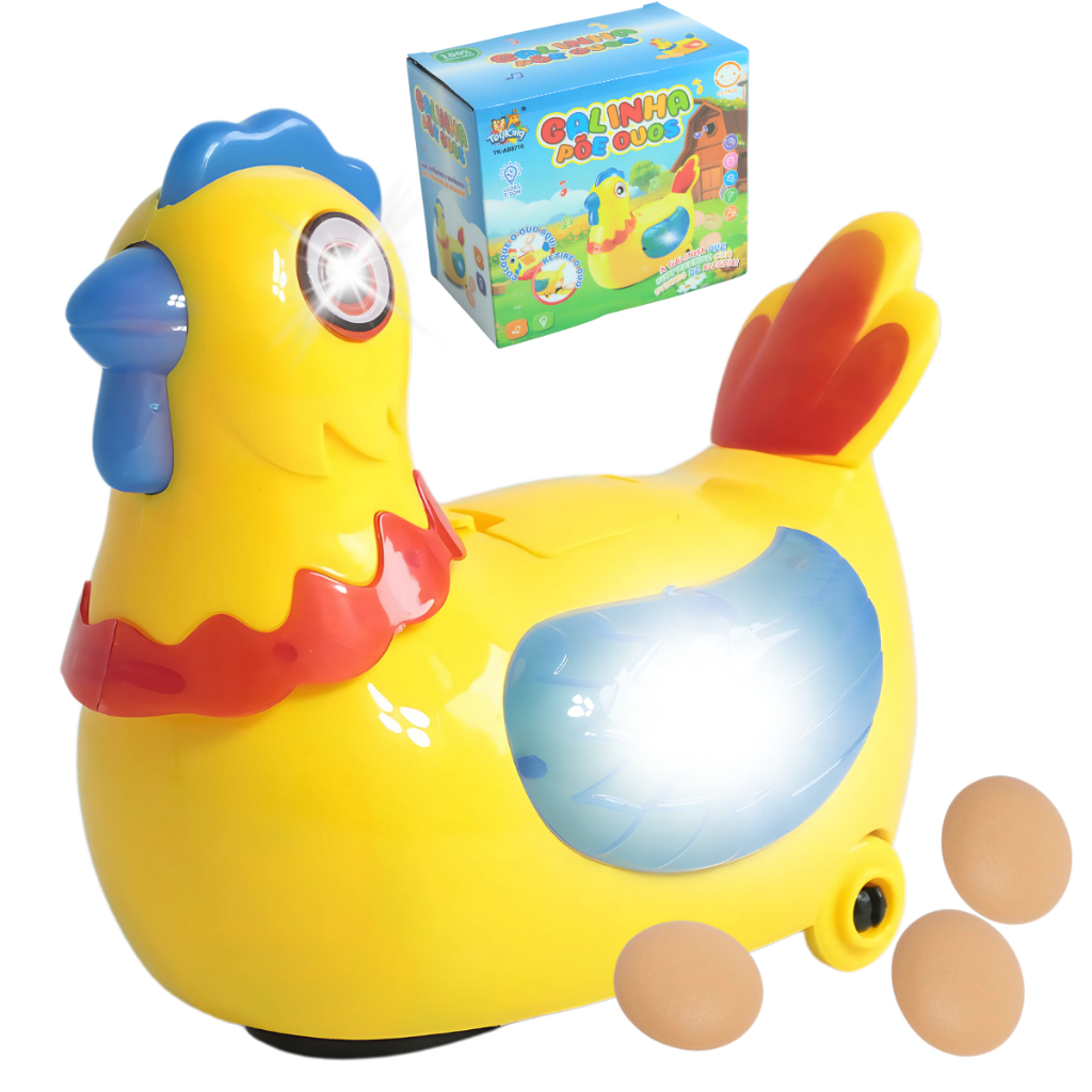 Galinha De Brinquedo Robô Infantil Anda Bota Ovos Luz Som