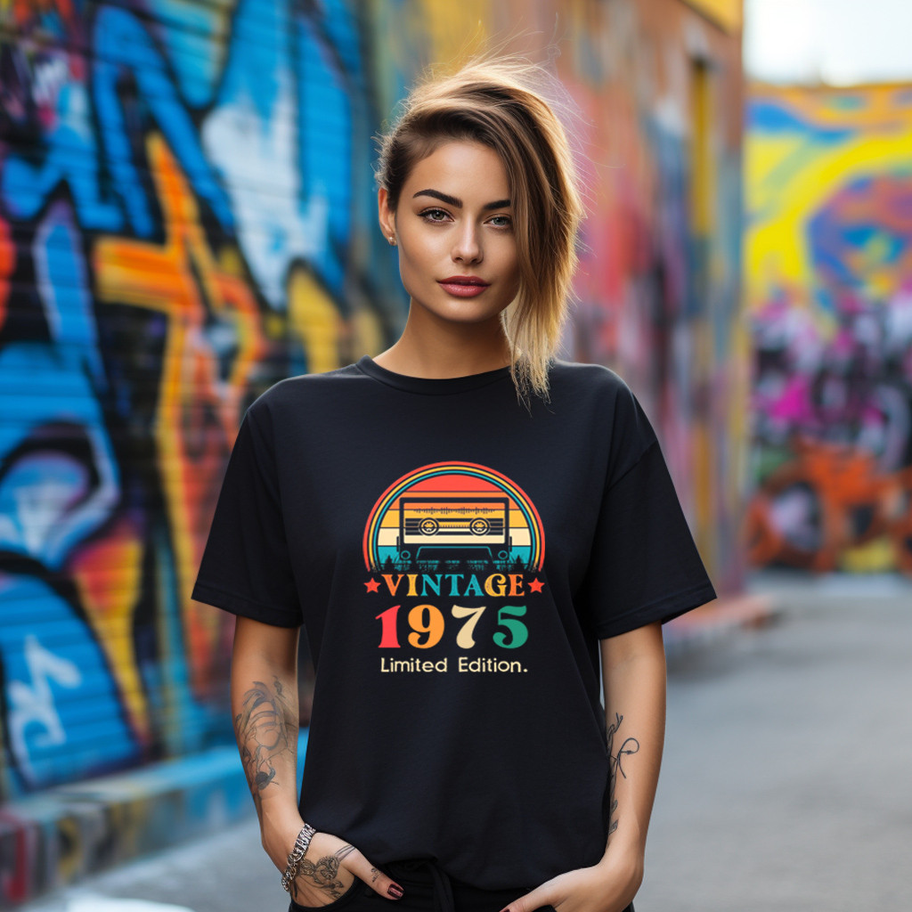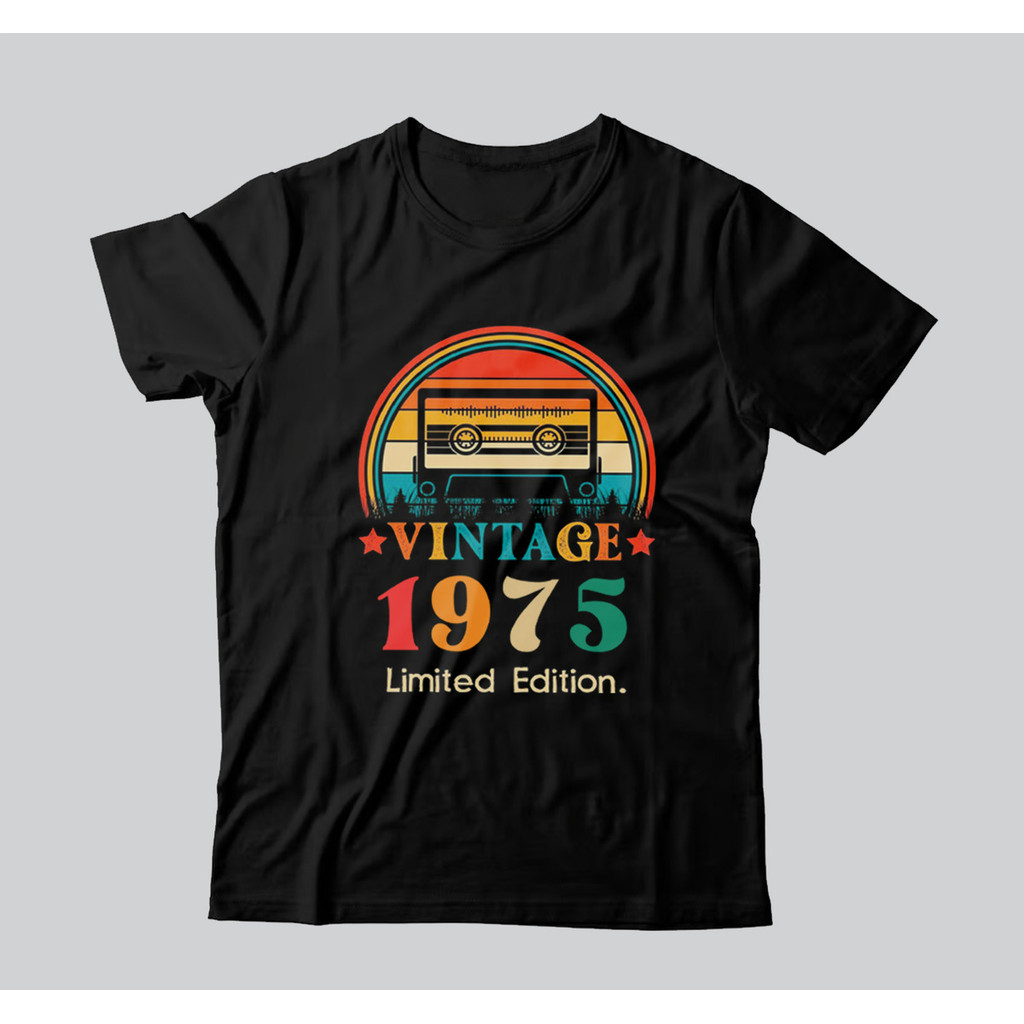 Camiseta Preta Feminina Masculina Vintage 1975 Ano Fita