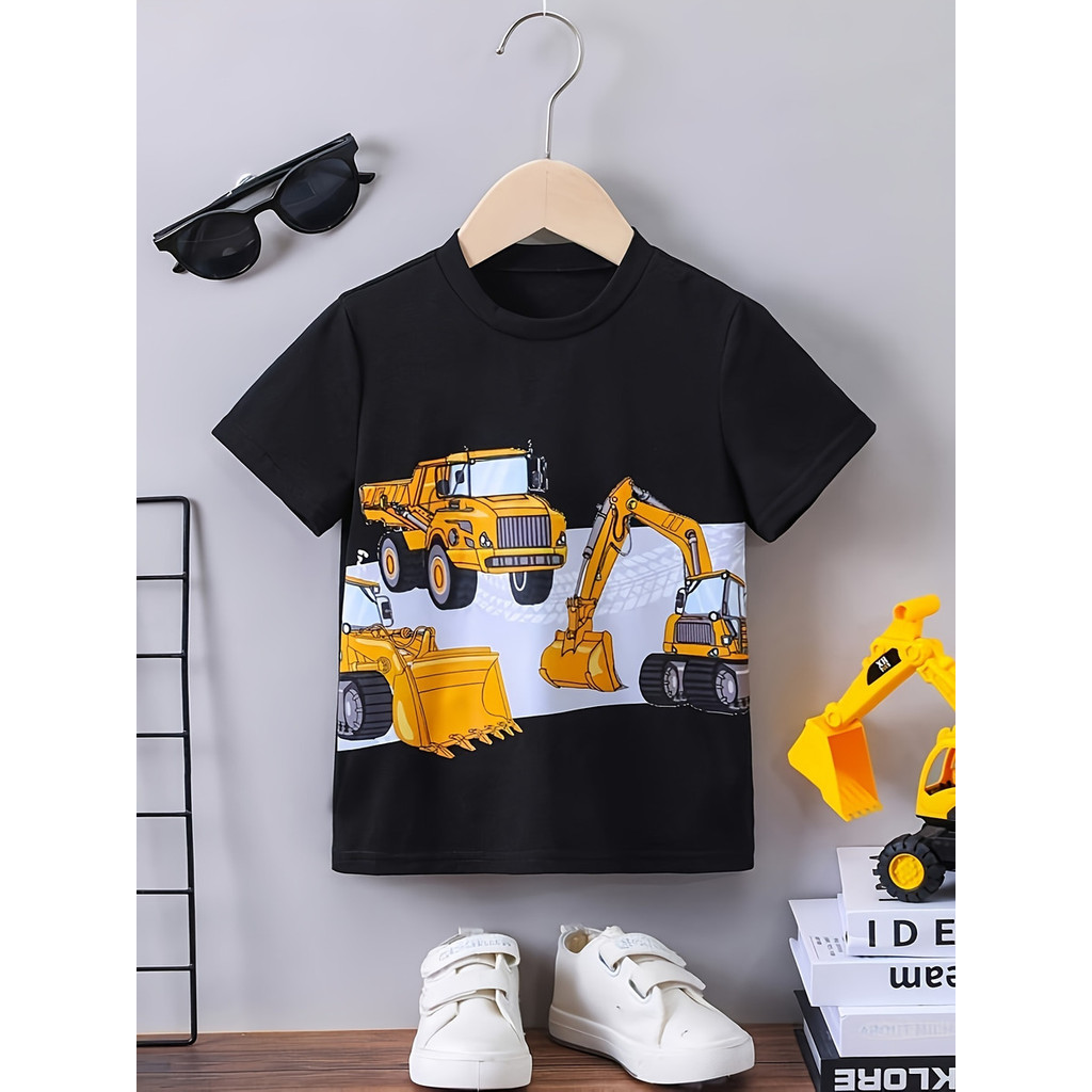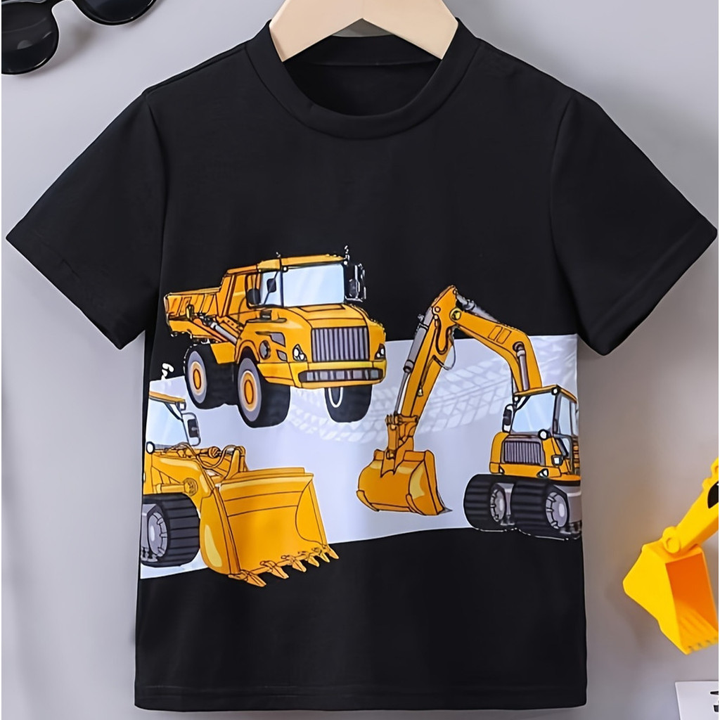 Camiseta Blusa Infantil Estampa Caminhão Trator Escavadeira