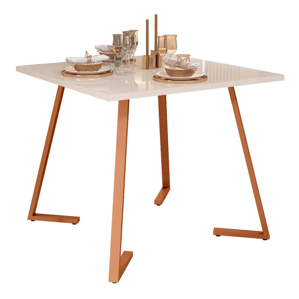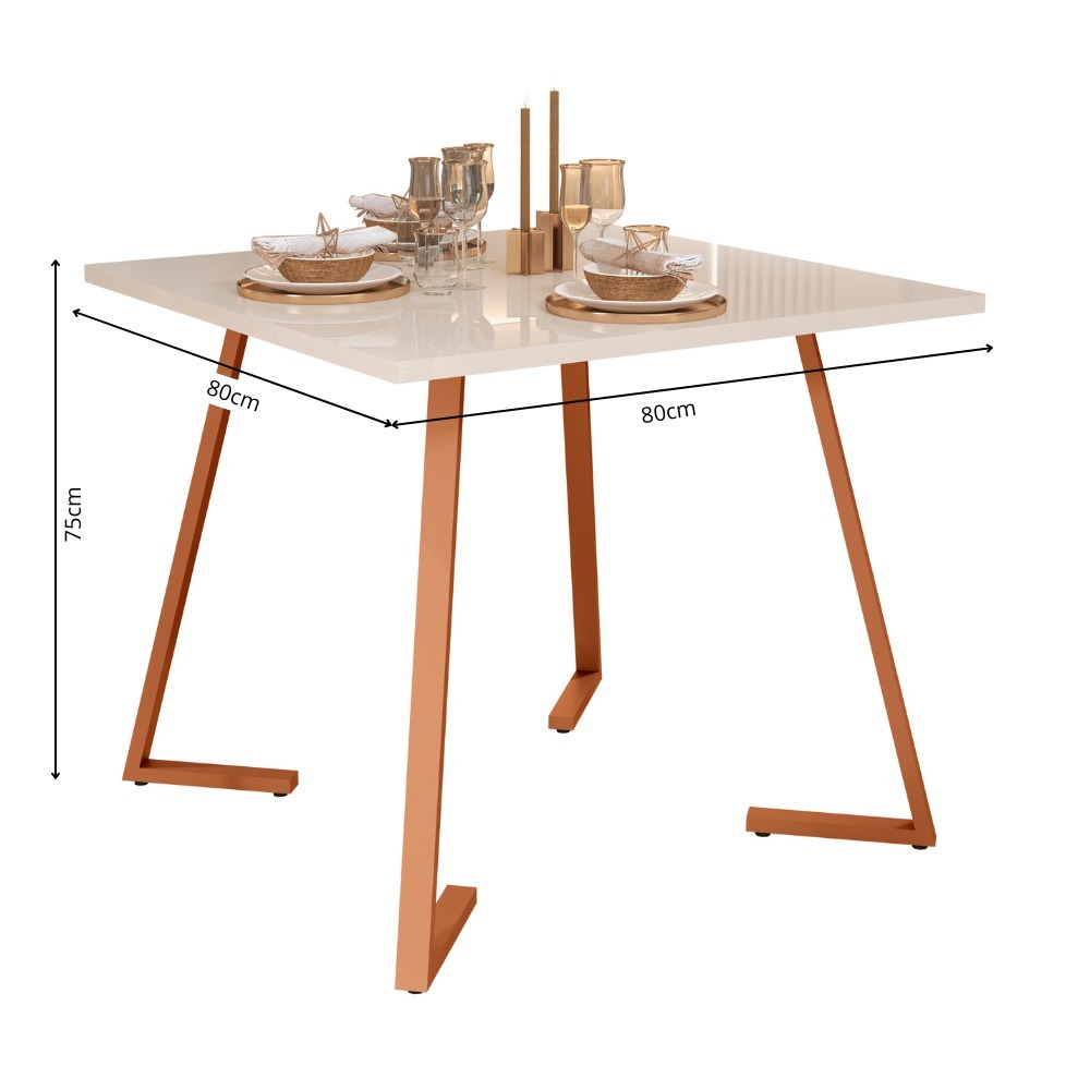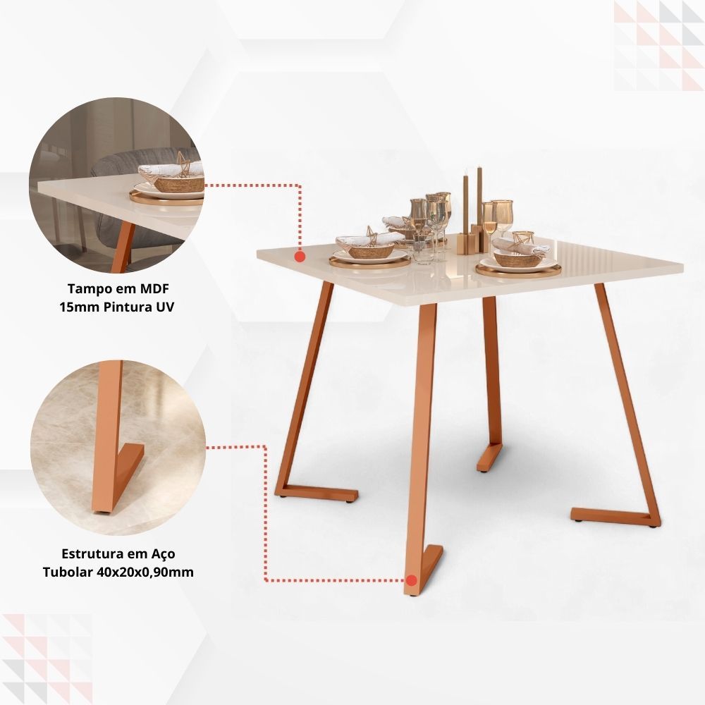 Mesa De Jantar Nantes 80x80 4 Lugares Industrial Pés Em Aço E Tampo MDF Apartamento Compacta Cozinha