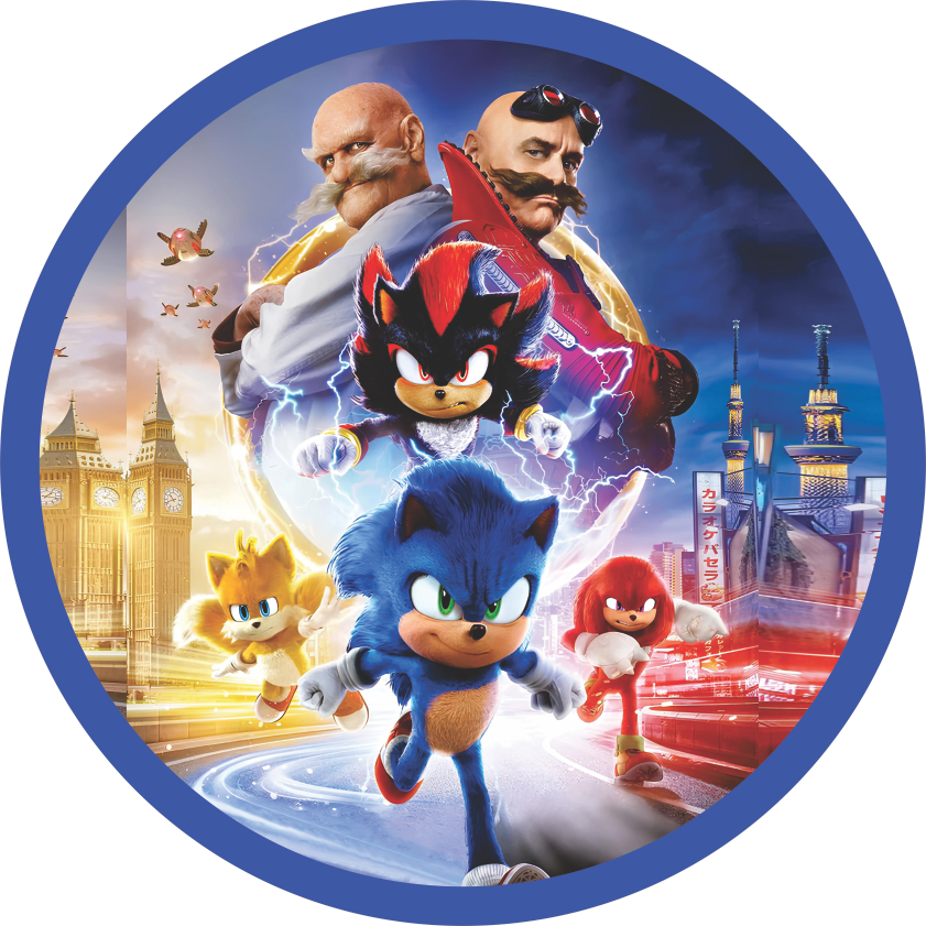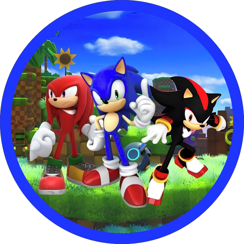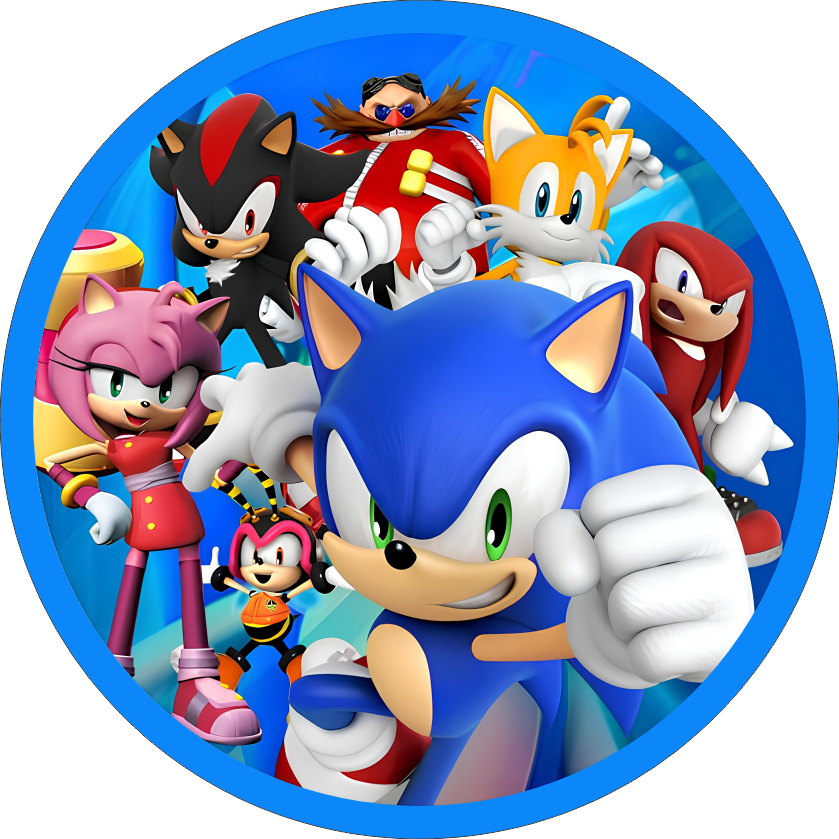 Painel Sonic Festa Redondo Tecido Sublimado 1,50x1,50m