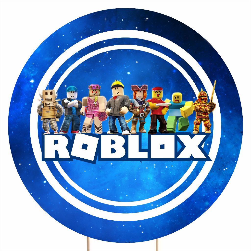 Painel Roblox Azul Festa Redondo Tecido Sublimado 1,50x1,50m