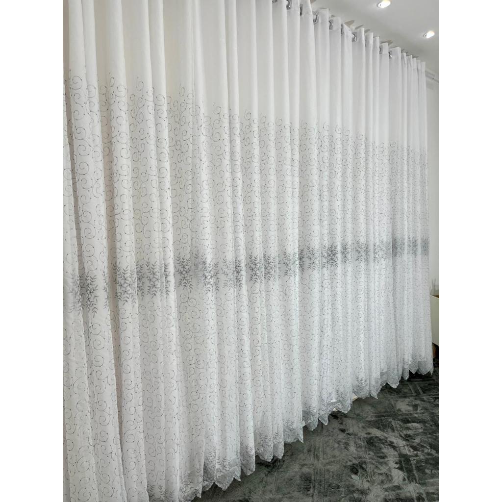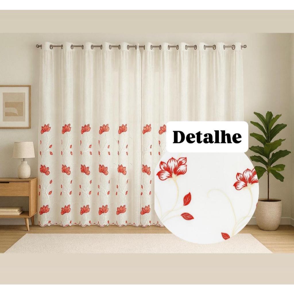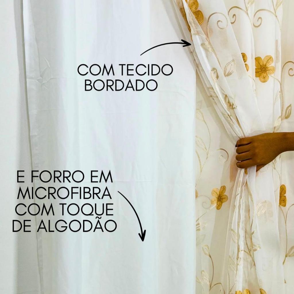 Cortina bordada 5,80 X 2,70 com forro de microfibra ilhós cromado luxo qualidade