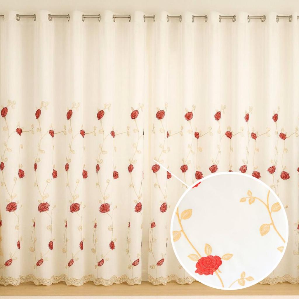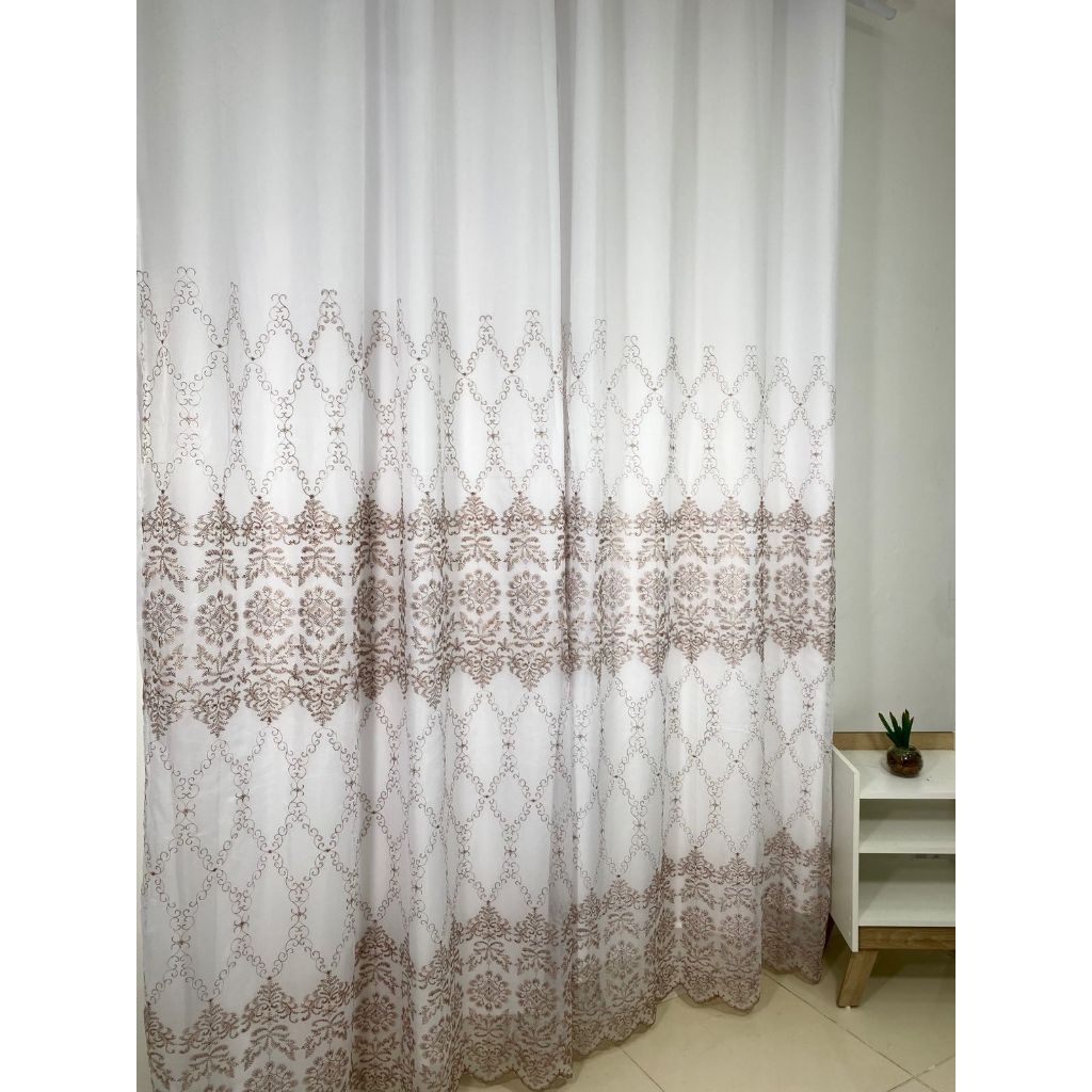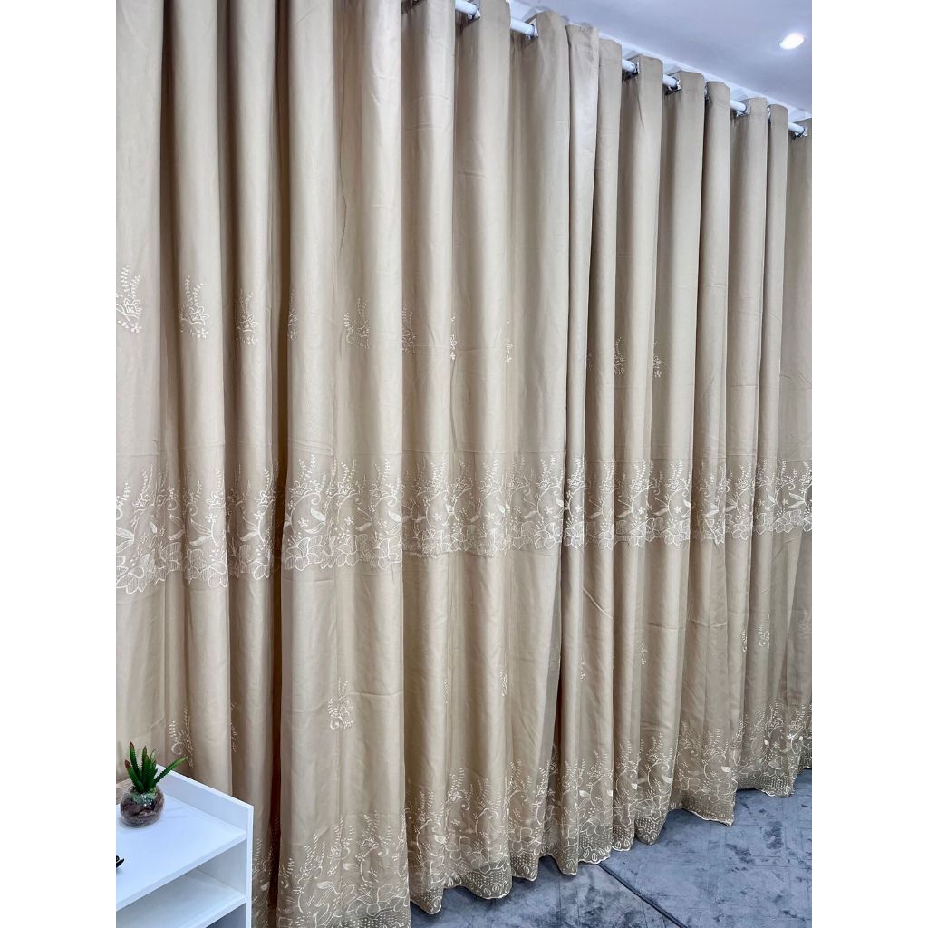 Cortina bordada 5,80 X 2,70 com forro de microfibra ilhós cromado luxo qualidade