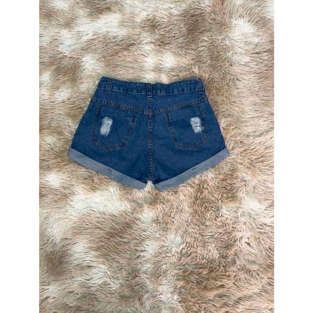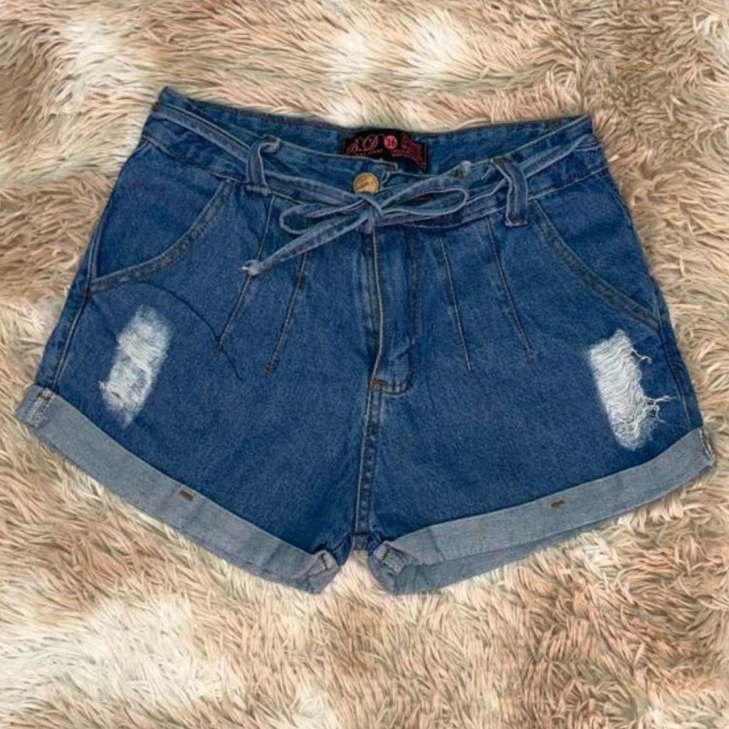 Short curto feminino com detalhe na frente e bolso traseiro