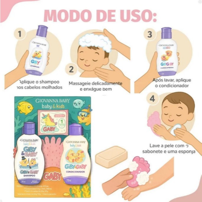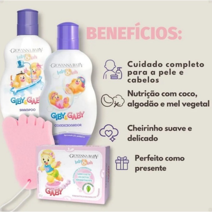 Kit Infantil Giovanna Baby Gaby Hora Do Banho Rosa Com Sabonete Vegetal