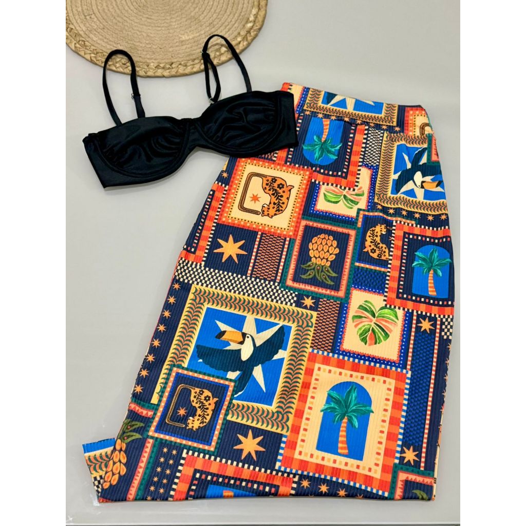 Conjunto Feminino Saia Midi + Cropped Saia feminina estampada tucano tropical verao inspiração fa estampa tucano Top