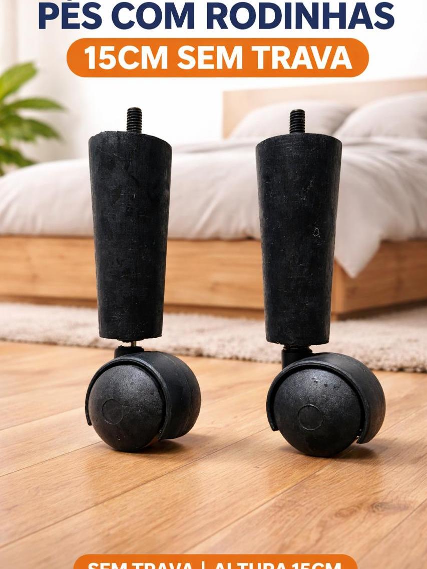 PÉ PARA CAMA BOX BAU SOFAS PUFFS MOVEIS EM MADEIRA COM RODINHAS SEM TRAVA 12CM UNVERSAL FORTE.