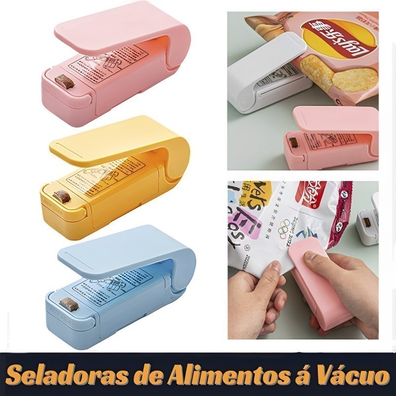 Mini Máquina Seladora a Pilha Colorida Com Imã de Geladeira Selador de Embalagem Plastica Pratica e Rápida