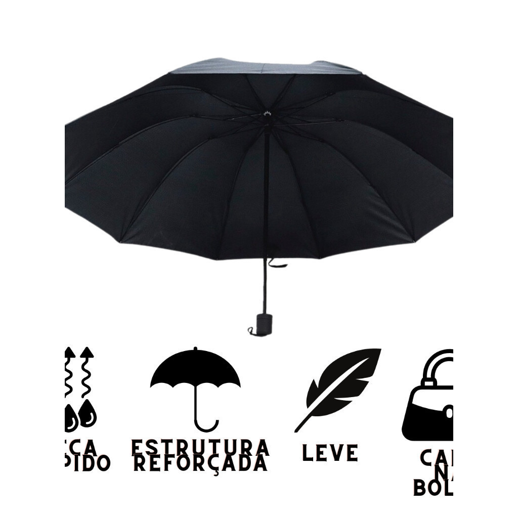 Guarda-chuva grande duplo extra grande reforçado preto cor sólida unissex Preto