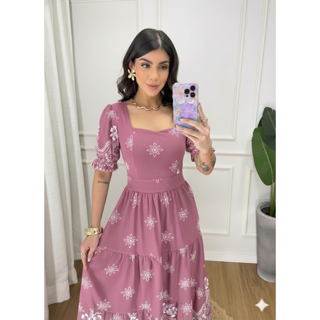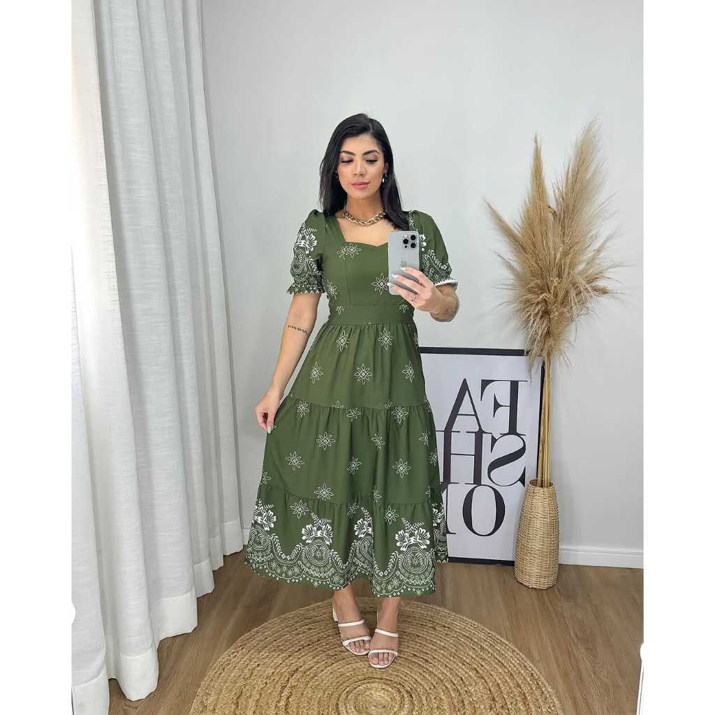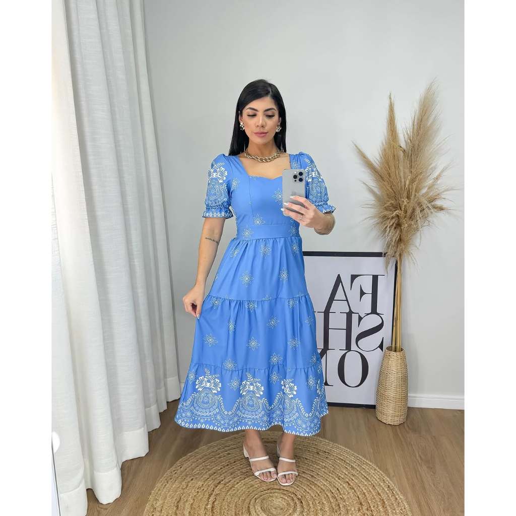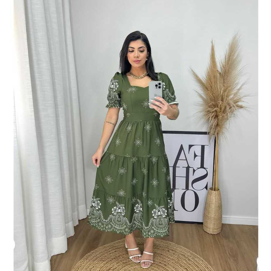 Vestido feminino mídi elegante evangélica manga princesa com elastes na costas confortável tecido