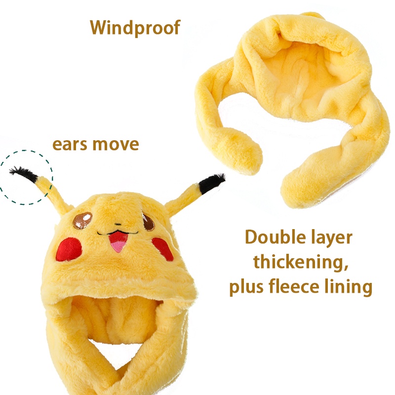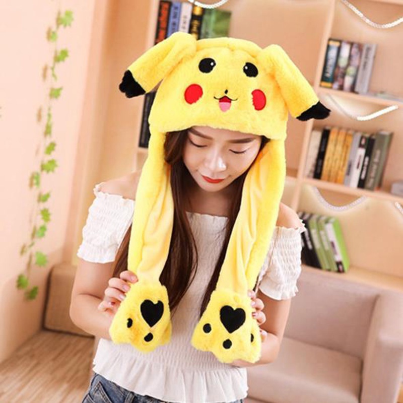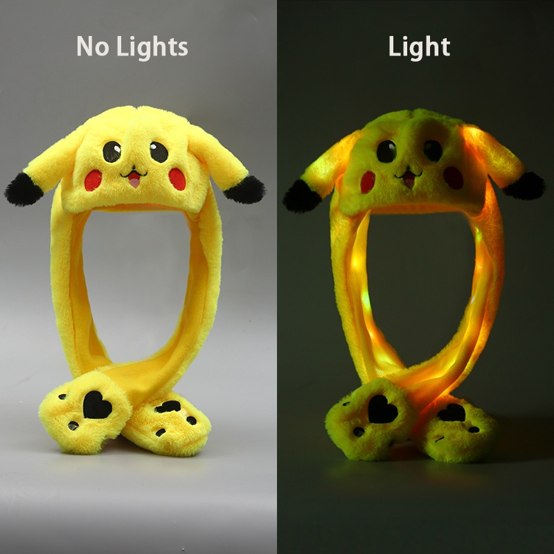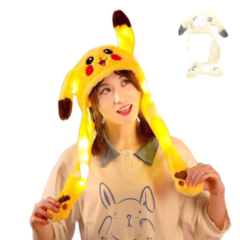 Chapéu De Pelúcia Pokémon Plush Com Orelhas De Coelho Pikachu Emissão De Luz Bonitas Cartoon Flash Presente De Aniversário Para Crianças