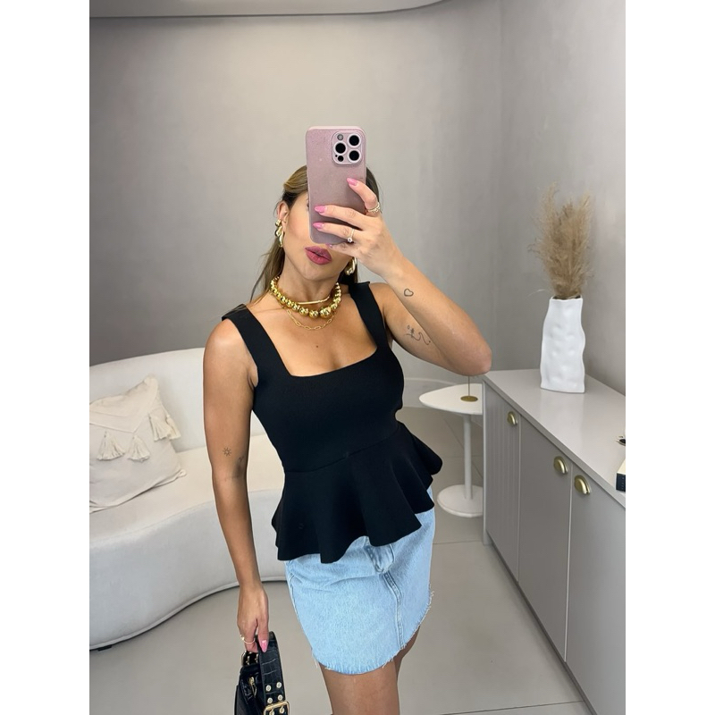 Regata Feminina Peplum Bata Rodadinha Tricot Modal Premium Tendencia Verão 2025