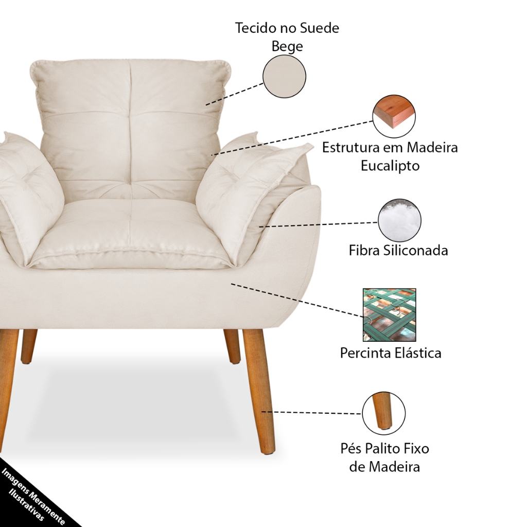 Poltrona opala mais puff deluxo pés palito Suede bege