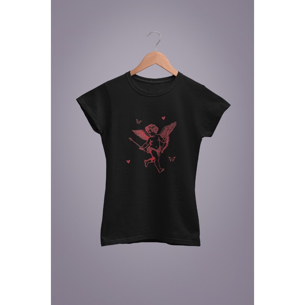 Baby Tee Y2K Feminina- Estampa Cupido, Conforto Elástico e Versátil para Primavera/Verão/Outono, Lavável