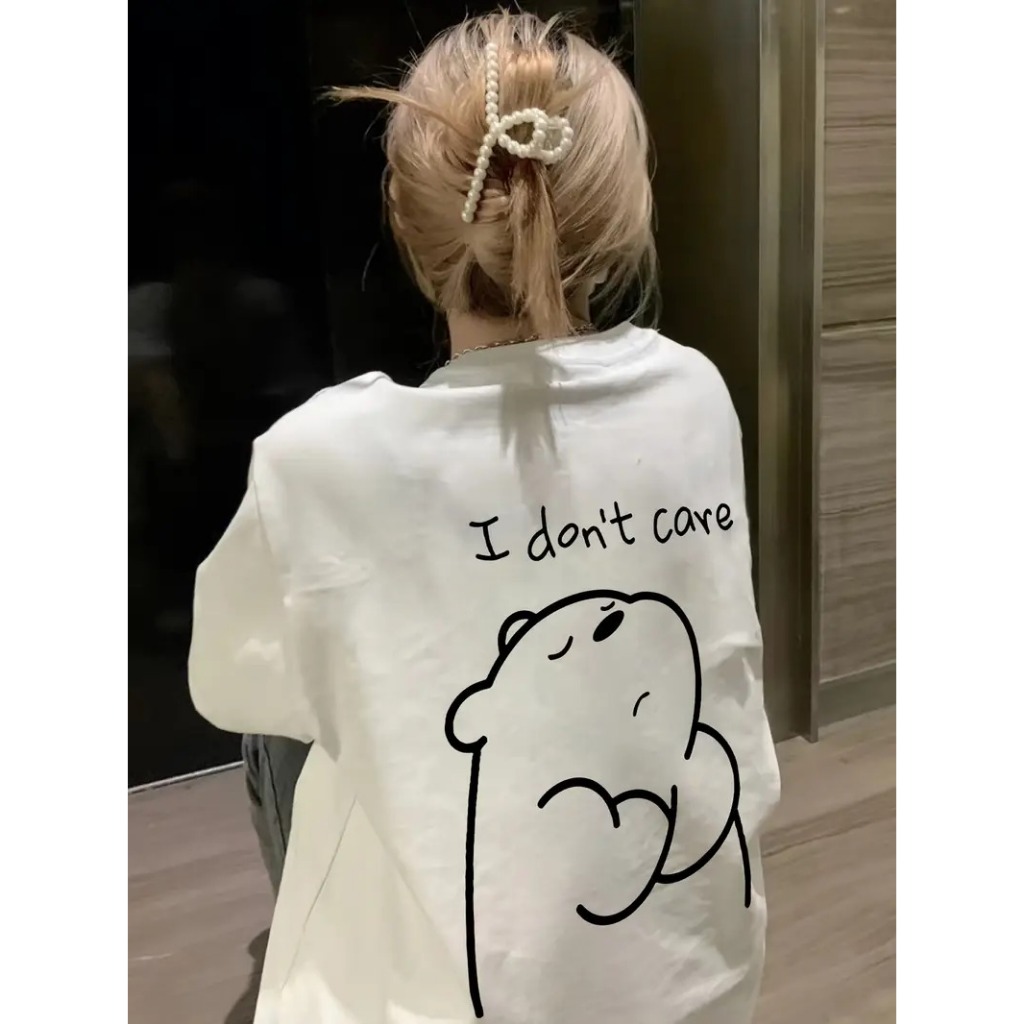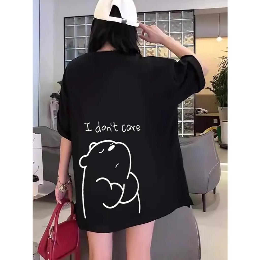T-shirt casual Camiseta Oversized ' Eu Não Ligo' Estampada Estilosa Camisa Confortavel Blogueira