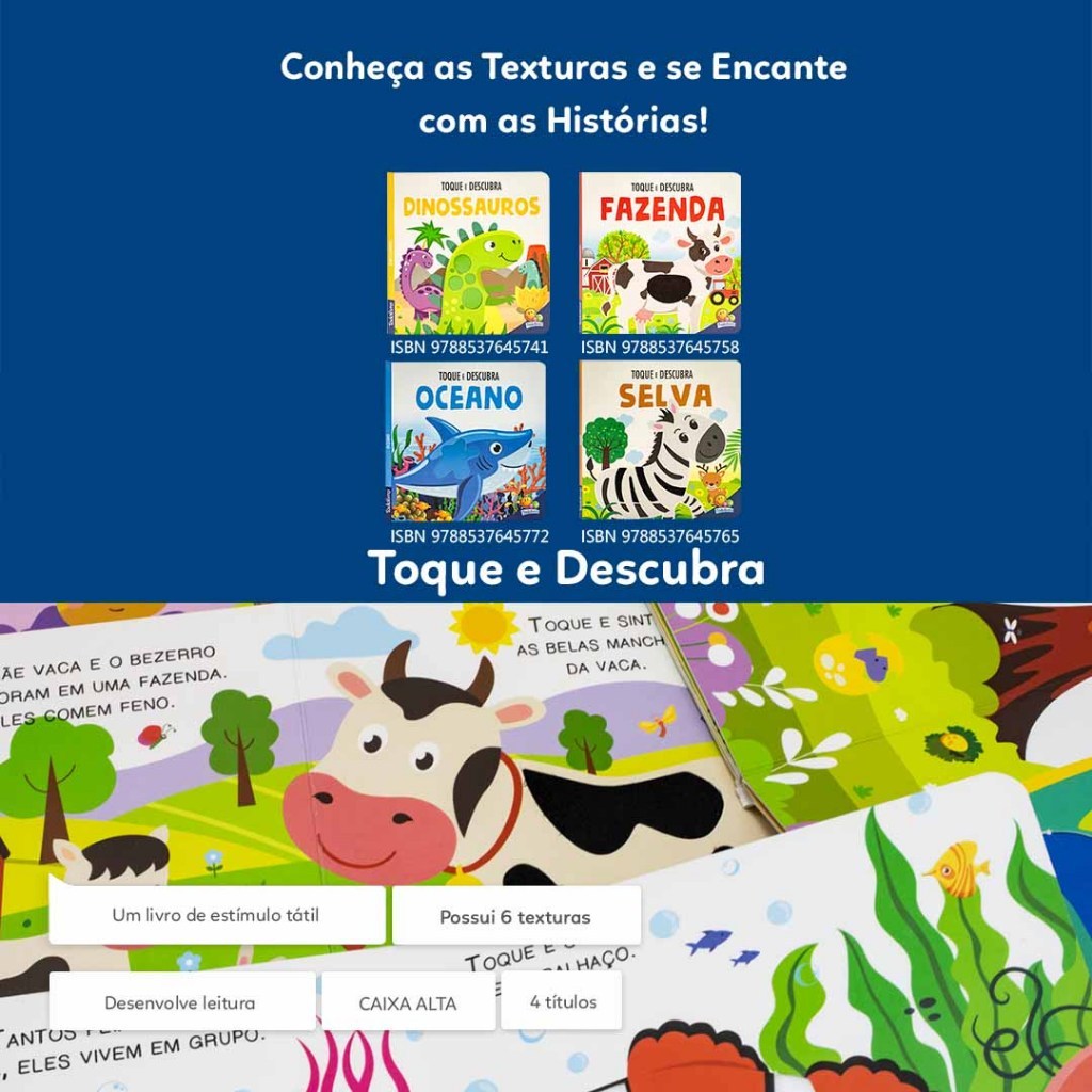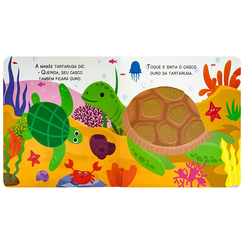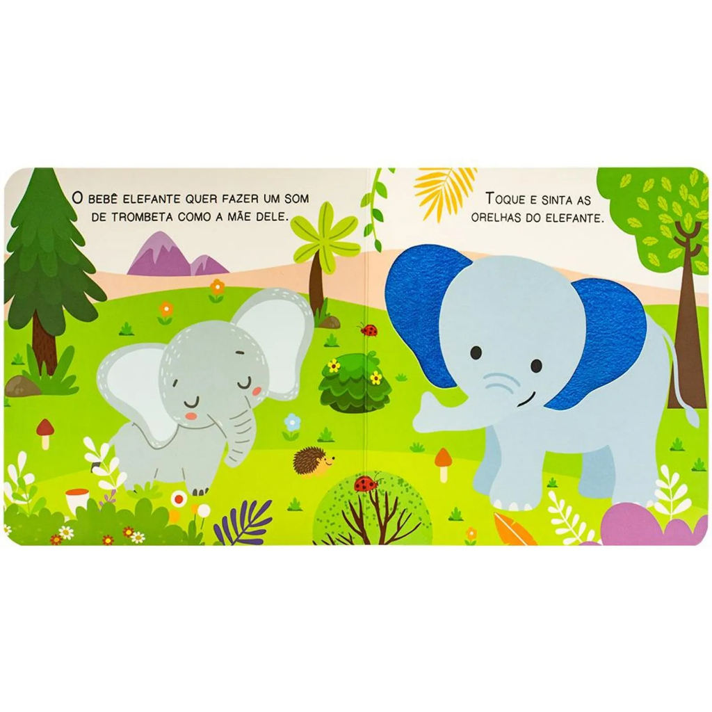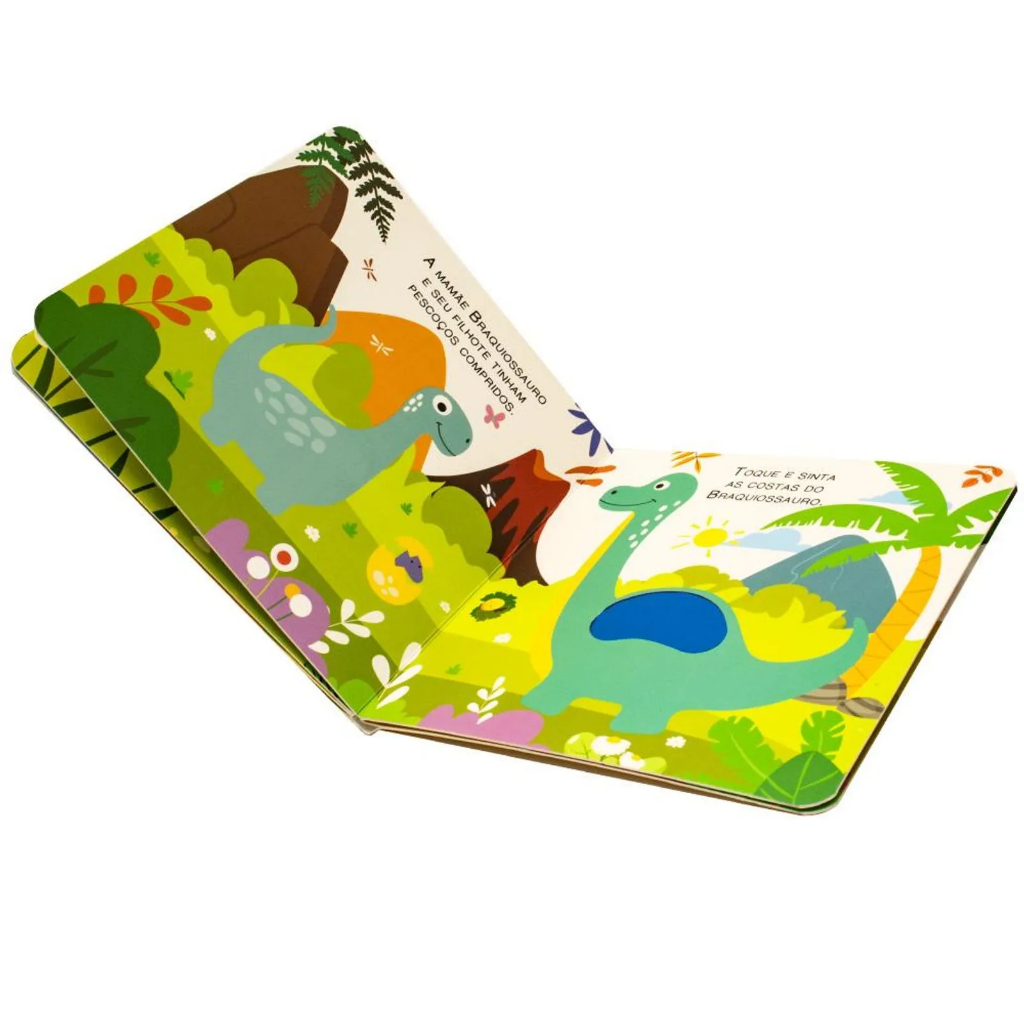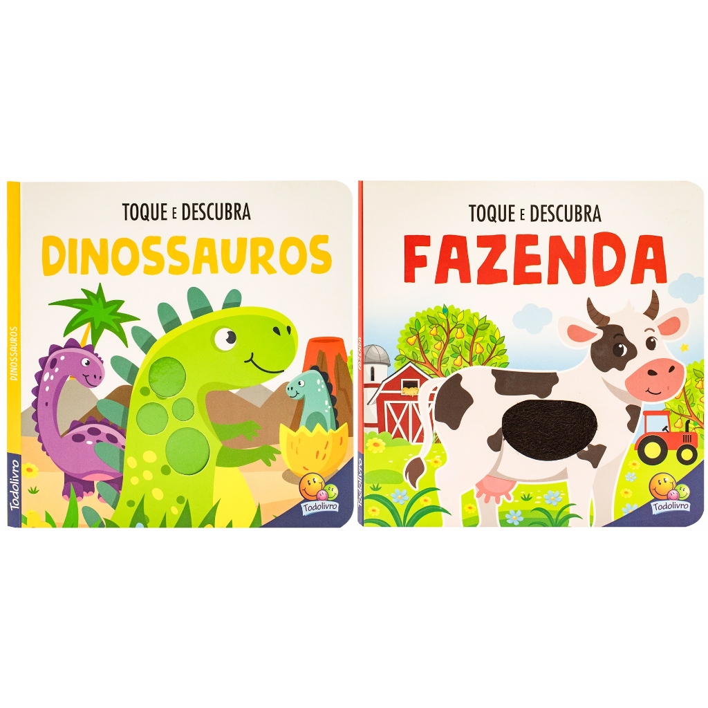 Livro Sensorial Toque e Descubra Fazenda Dinossauro Animais Selva com Textura para Bebê Cartonado