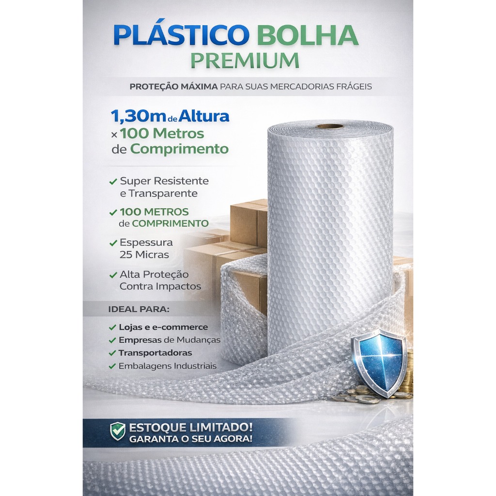 Plástico Bolha 1,30 x100 Metros Para Mudança Ecommerce Saco Bolha 100metros no Rolo