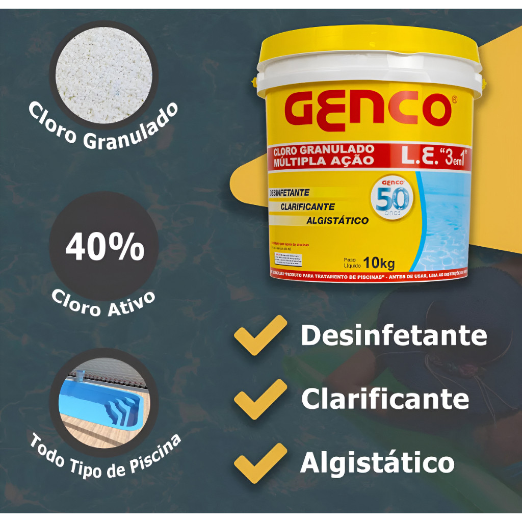 Cloro Granulado Múltipla Ação 3 em 1 10 kg ou 2,5kg Escolha – Genco