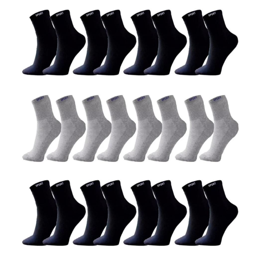 Meias Grossas Uso Casual Academia Sports 3/6/9/ ou 12 Pares Preto Branco e Cinza