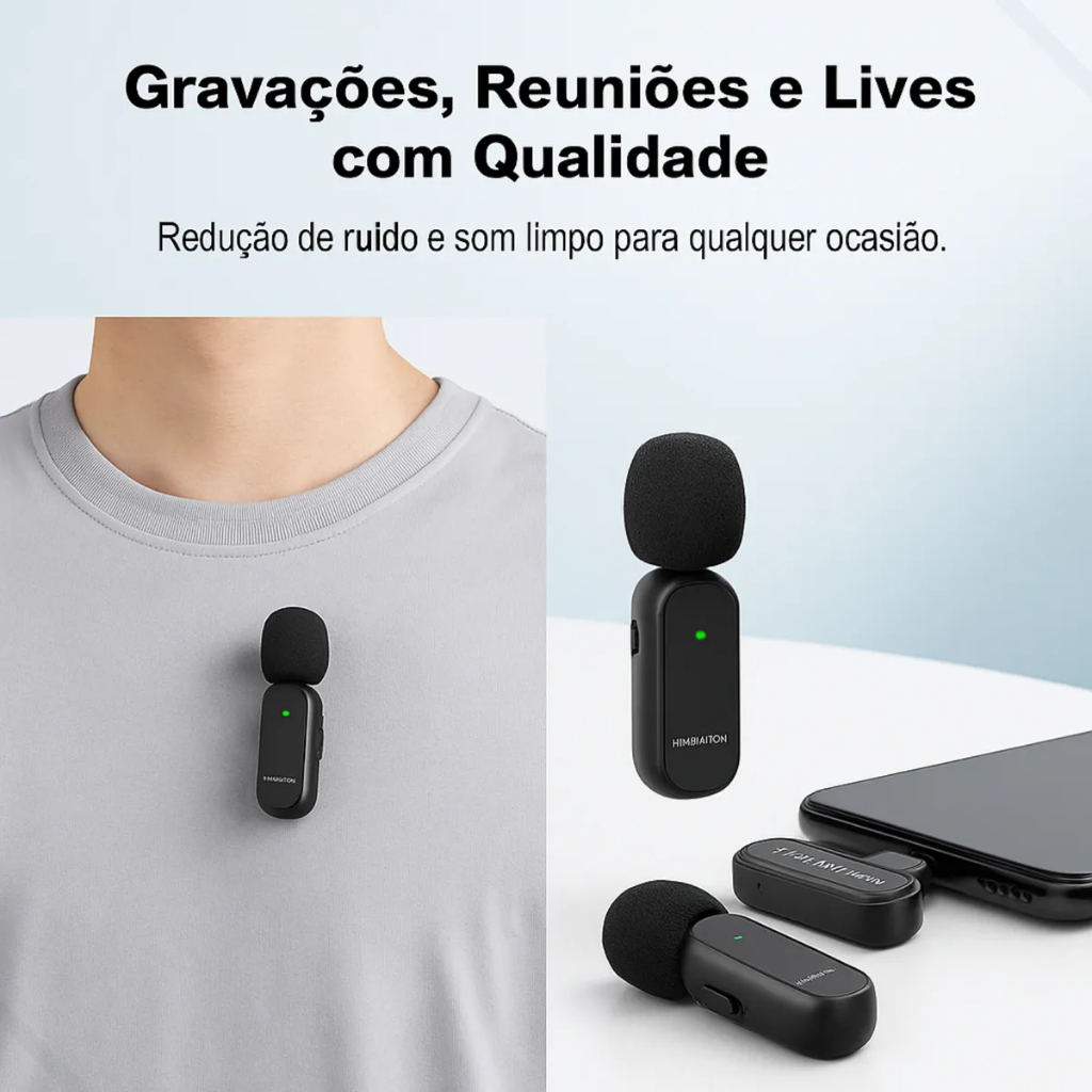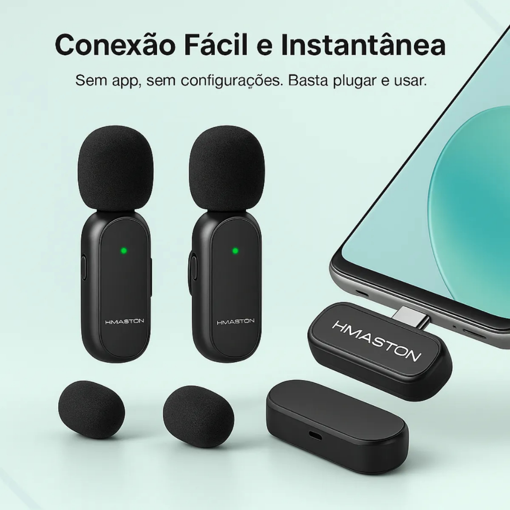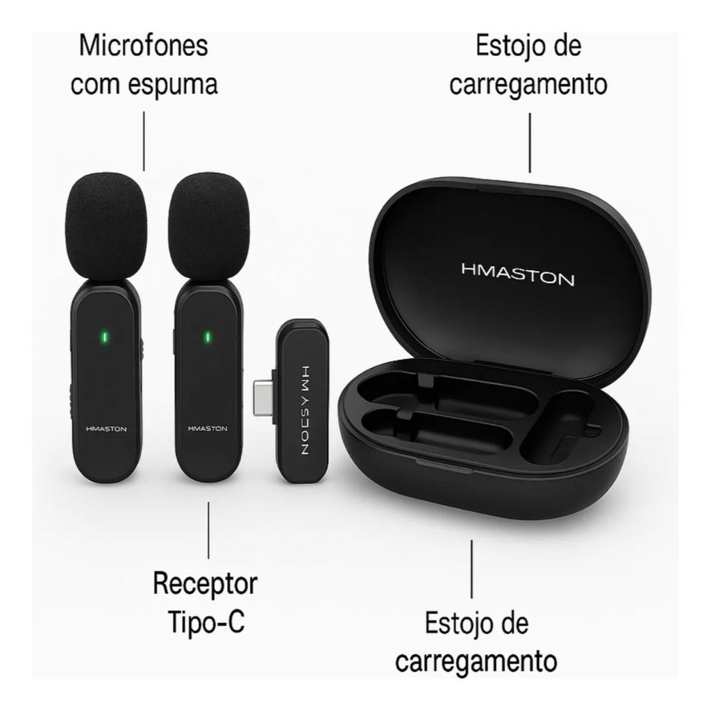 Microfone Lapela Sem Fio Profissional Tipo C H'maston Mk08 Para Vídeos Lives Entrevistas Gravação