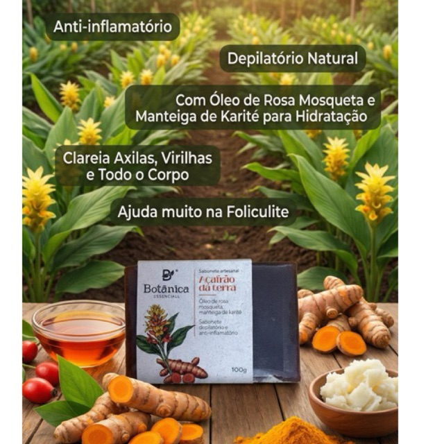 Sabonete de Açafrão | Rosa Mosqueta +Manteiga Karité + Barbatimão | Clareador e Hidratante 100 gramas