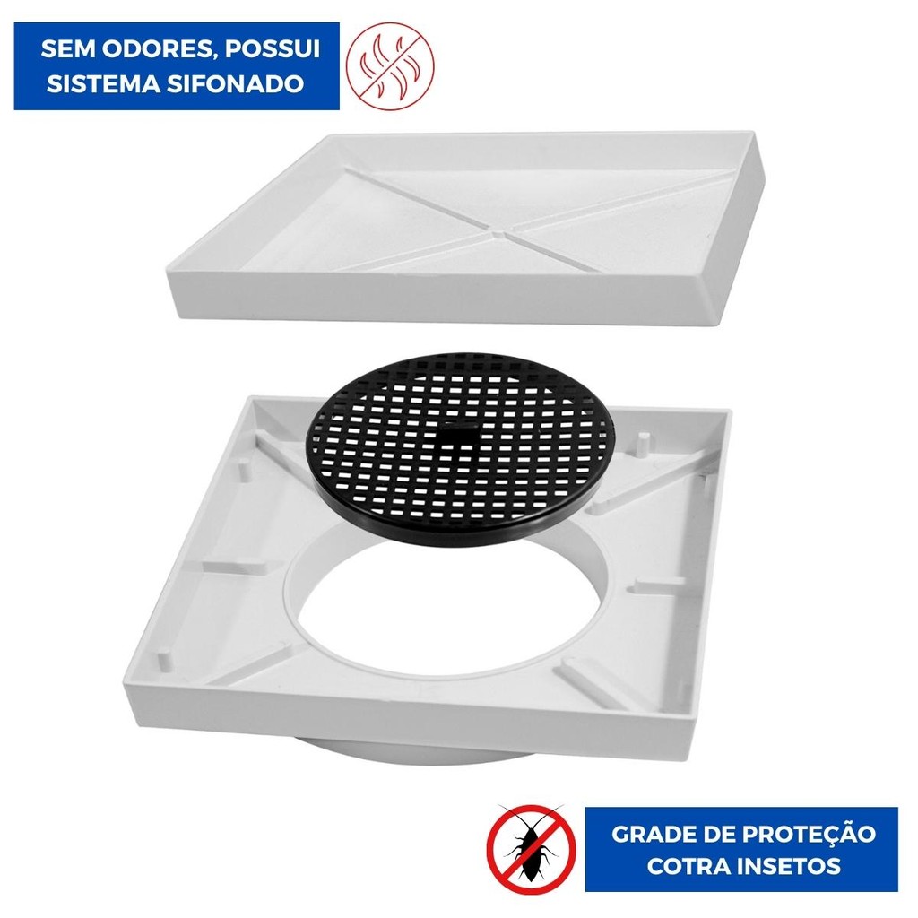 Ralo Invisível Tampa Oculta Sifonado 10x10cm | Kaztec | Kit 03 Un