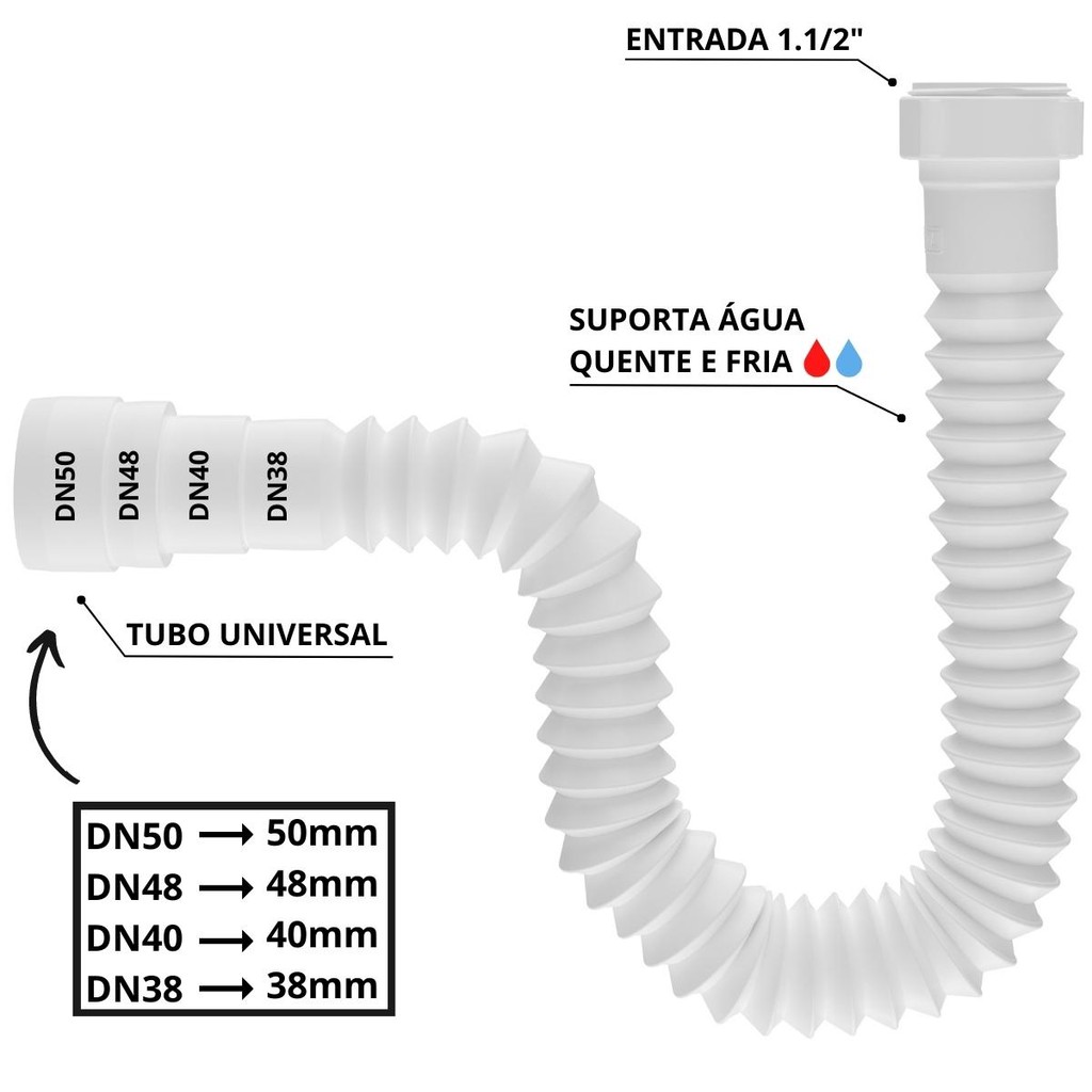 Sifão Sanfonado Universal 110cm Branco | Astra