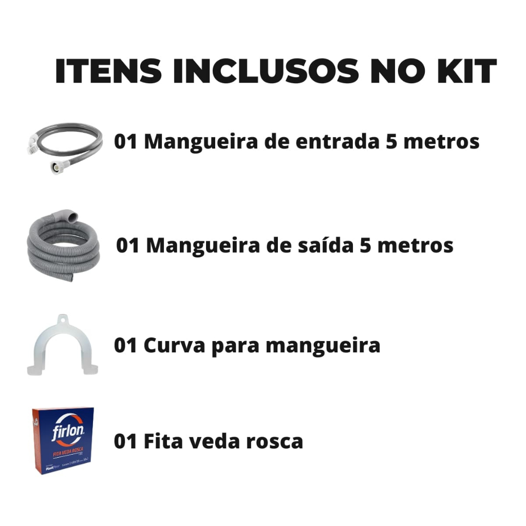 Mangueira Entrada Lavadora 5m c/Bucha Redução +Mangueira Saída Lavadora 5m +Curva p/ Mangueira +Vedação