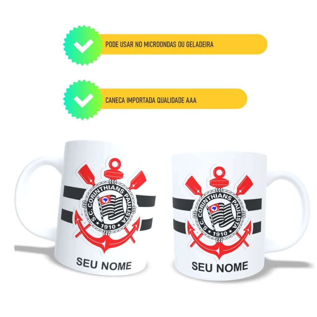Caneca Personalizada Varios times, Timão corinthians com Seu nome, Presente Ideal Aniversario, namoro, Oferta