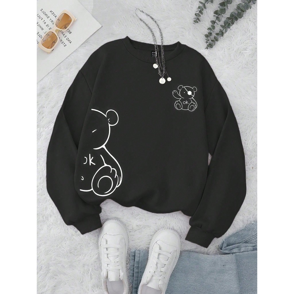 Moletom Urso Gráfico GOLA REDONDA FEMININO de Cartoon Revestido