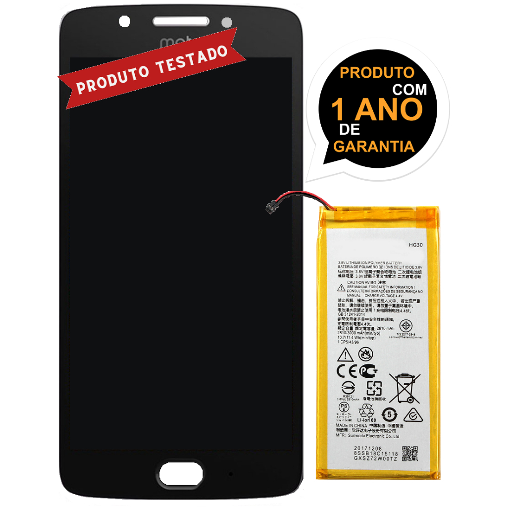 Kit Tela Frontal + Battria Compatível Moto G5s Plus XT1802 Touch Display + Premium Full Hd!