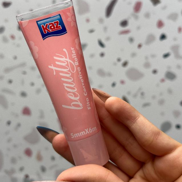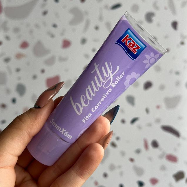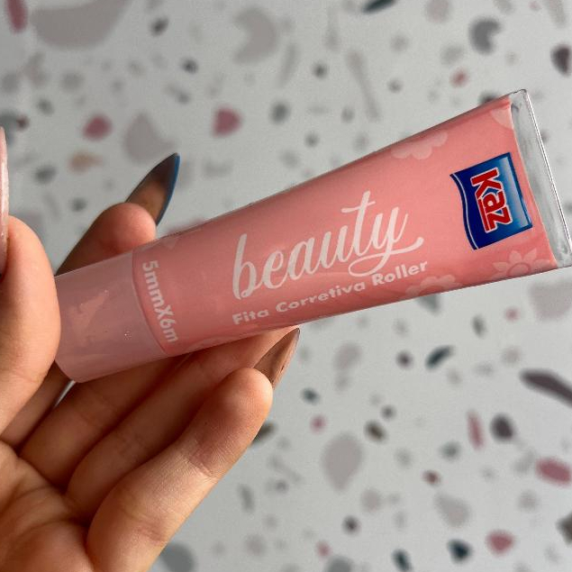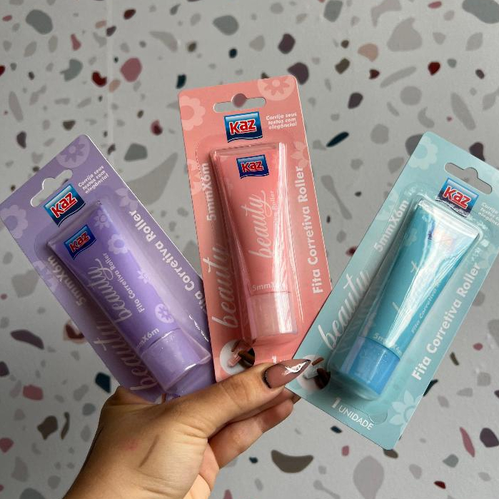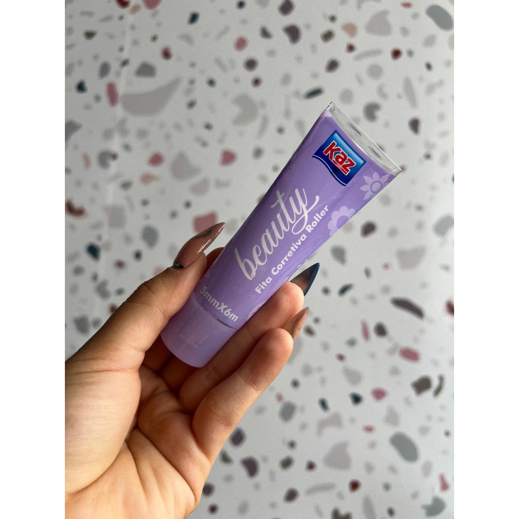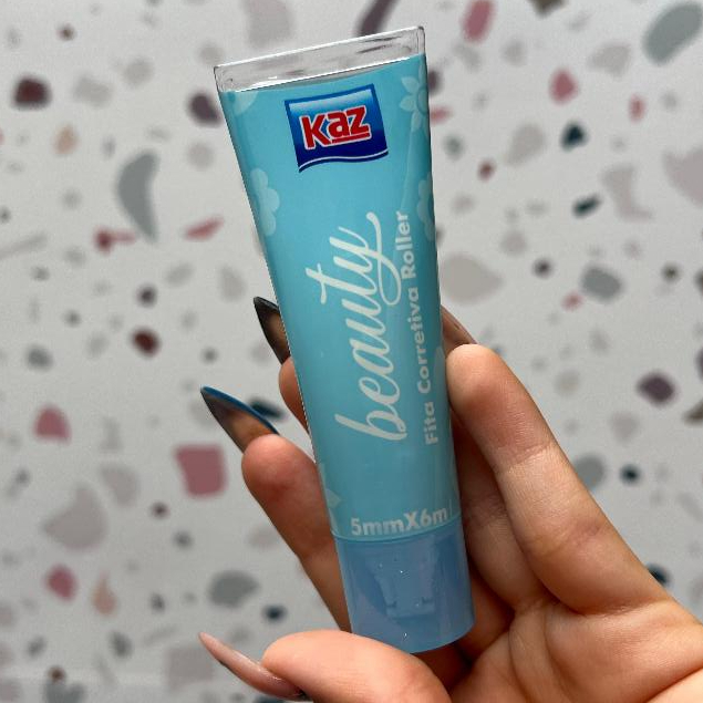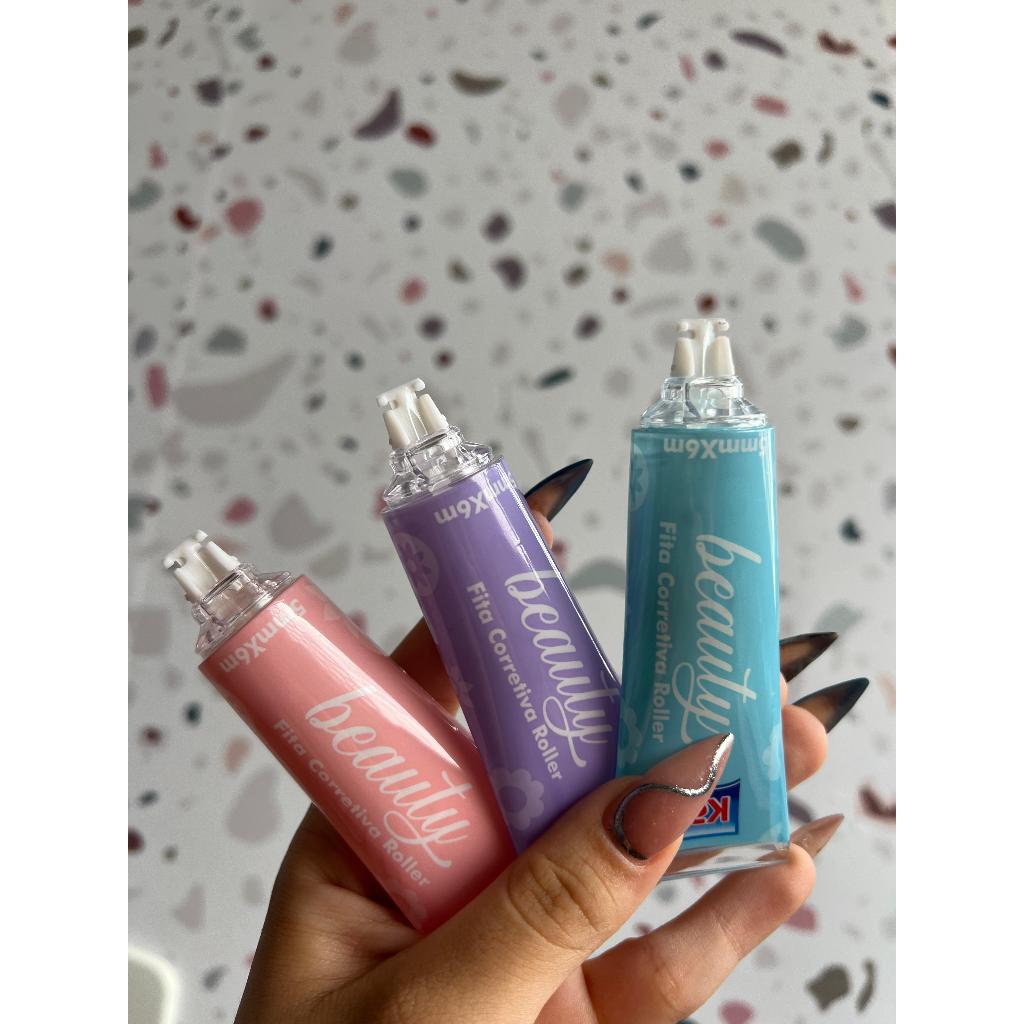 Fita Corretiva Roller Beauty 5mmx6m Kaz Escolar Embalagem Rosa Lilás e Azul KZ836