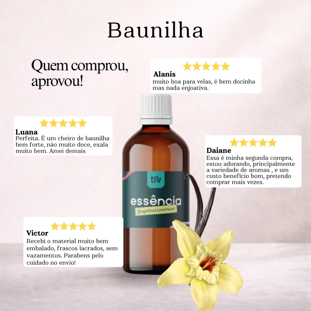 Essência de Baunilha a base de óleo para Velas, Aromatizador, Home Spray, Sabonetes e Mais!