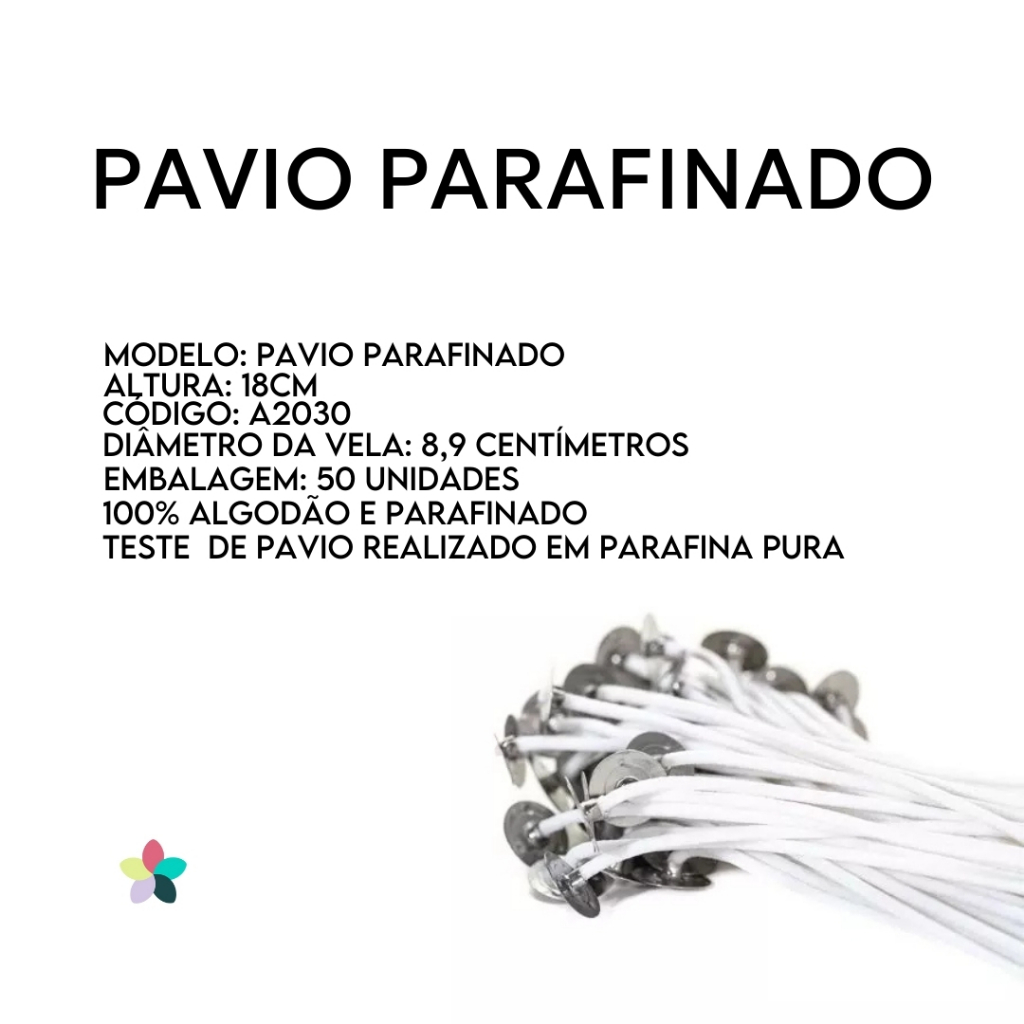 Pavio (A2030) para Velas Decorativas - 100% Algodão e Parafinado - 18cm