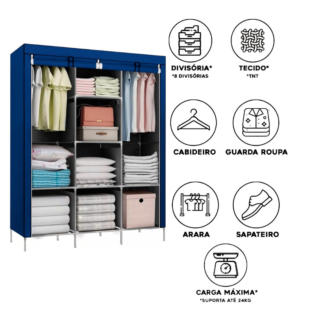 Guarda Roupa Dobrável Organizador De Roupas Decoteam