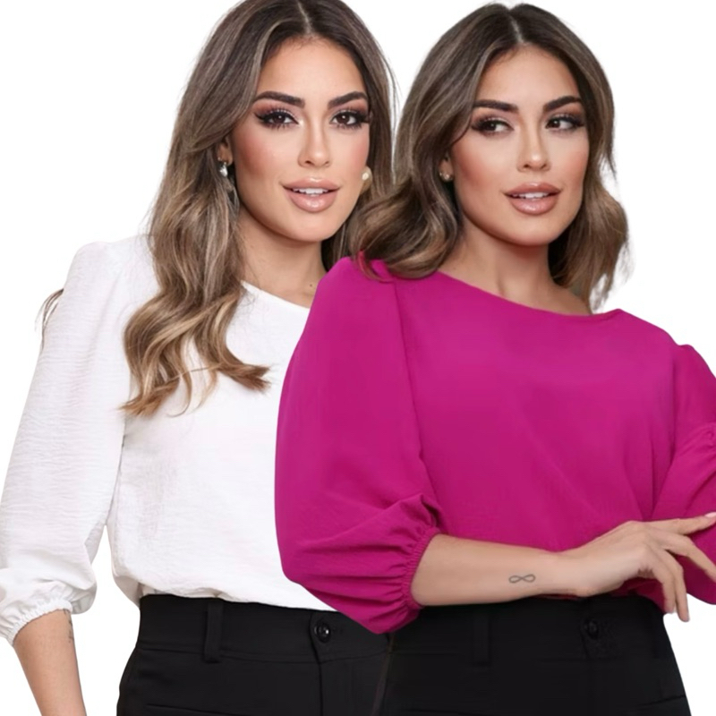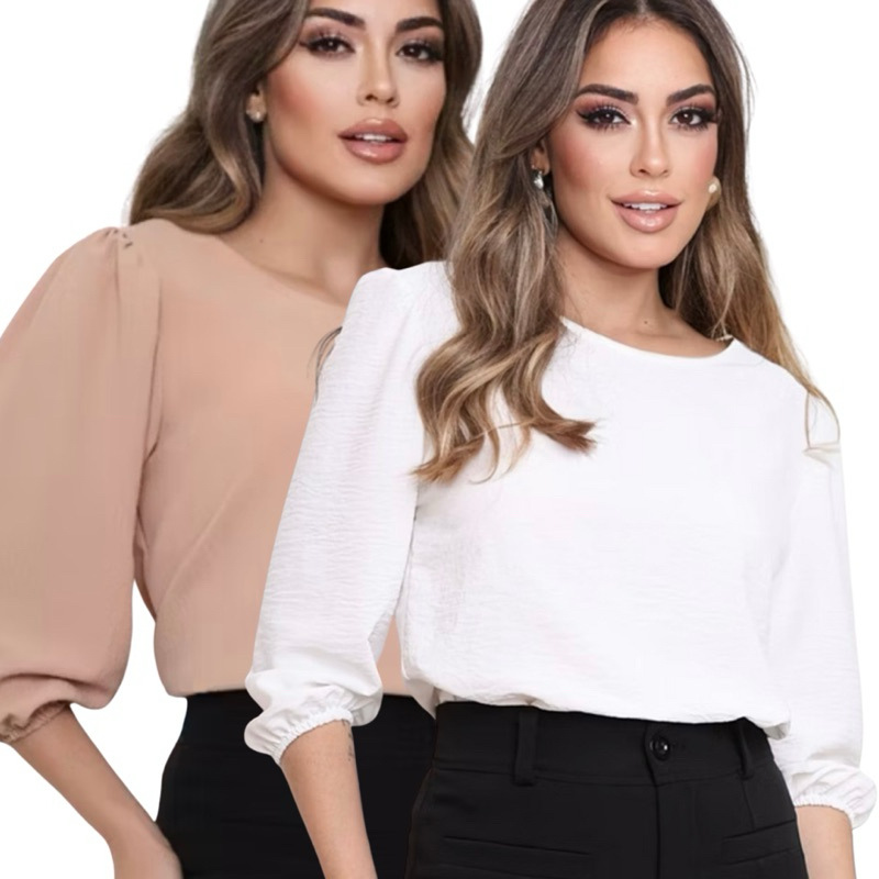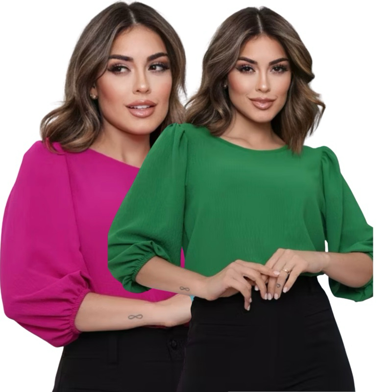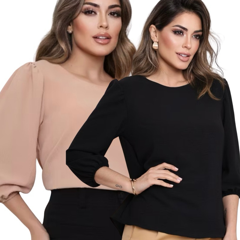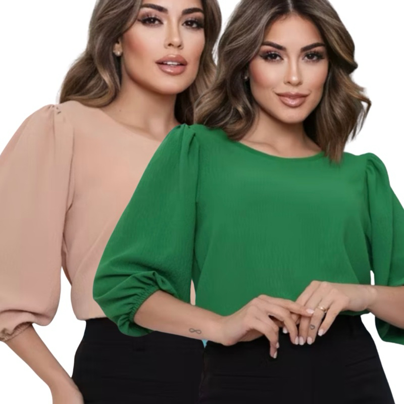 Kit Duas Blusas Femininas Tecido Manga 3/4 Evangelica Moda Promoção