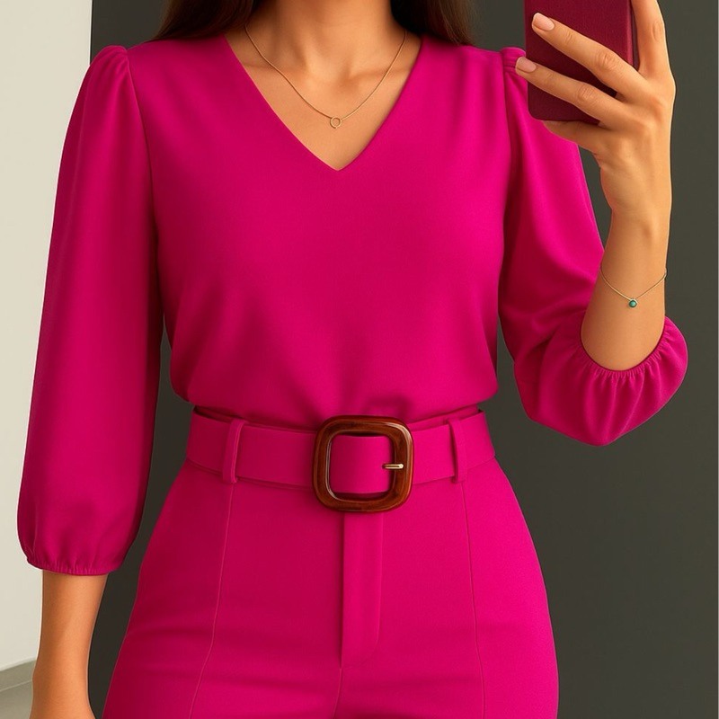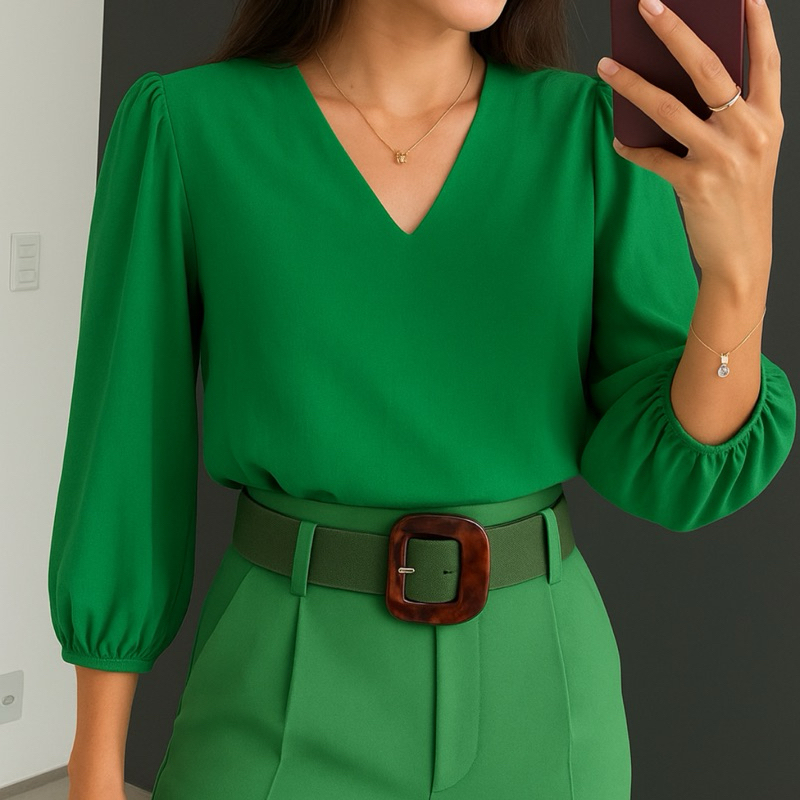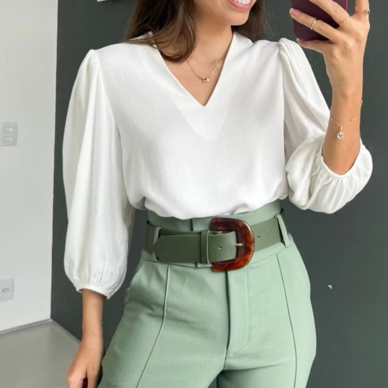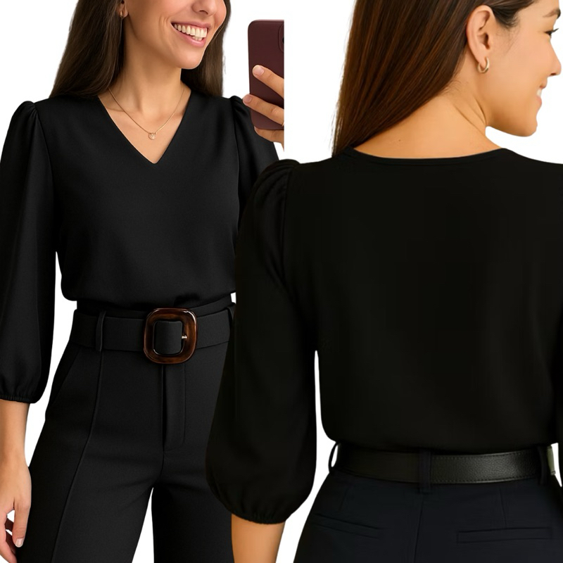 Blusa Feminina Manga 3/4 Novas Cores Tecido Crepe Moda Evangelica Detalhe Social Elegante