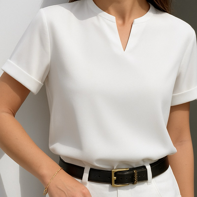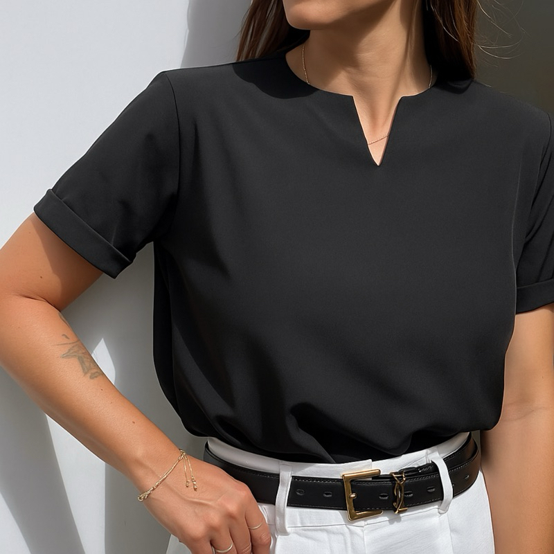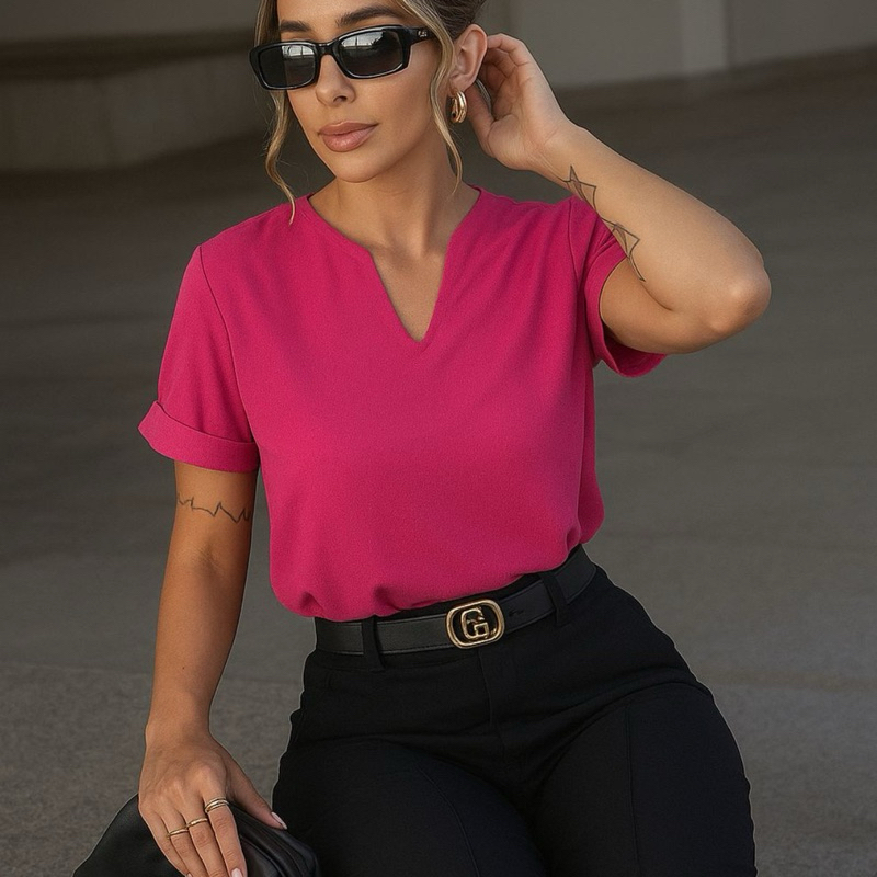 Blusa Feminina Detalhe em V Manga Dobrada Promoção Moda Social Trabalho