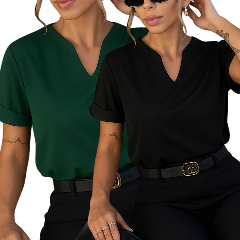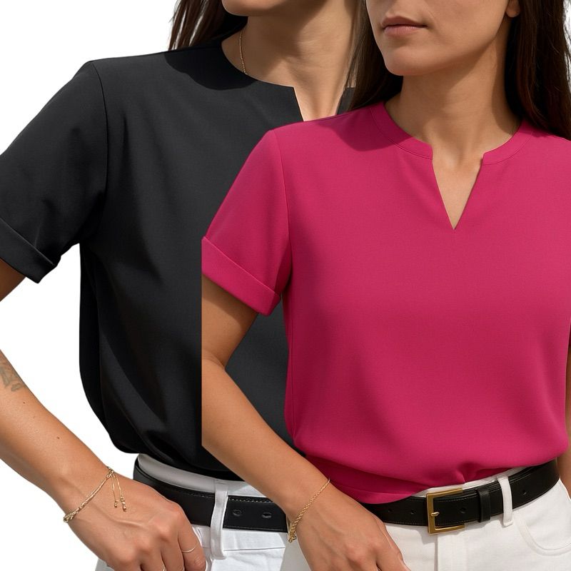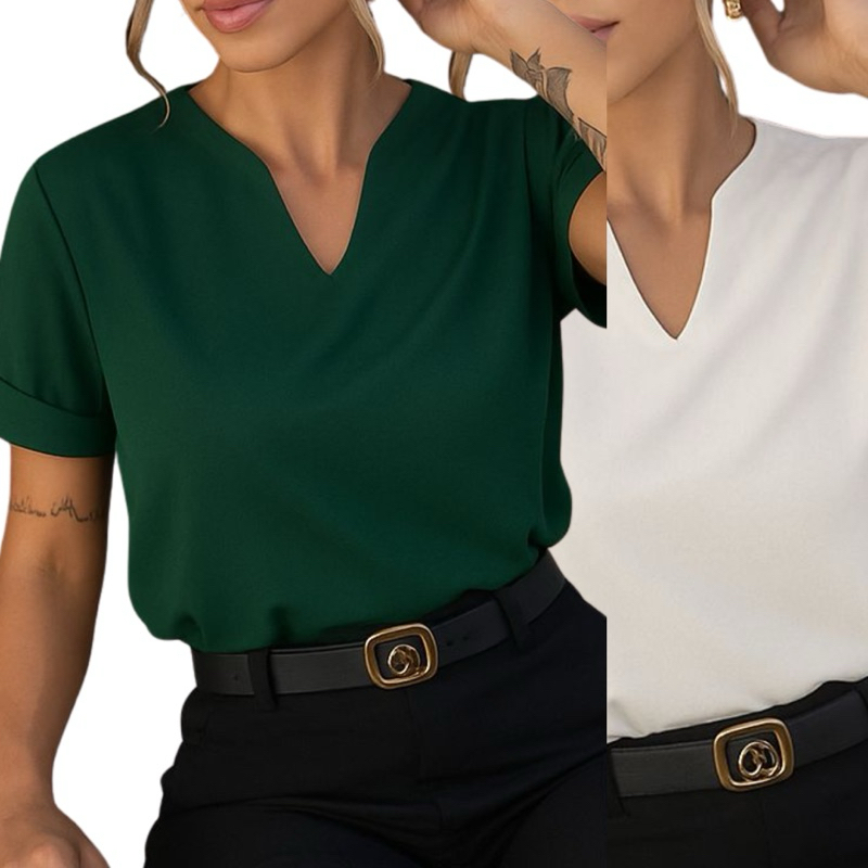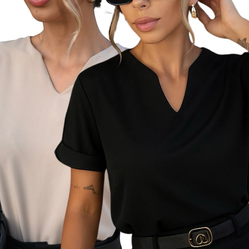 Kit Duas Blusas Manga Dobrada Detalhe V Tendência Evangelica Moda