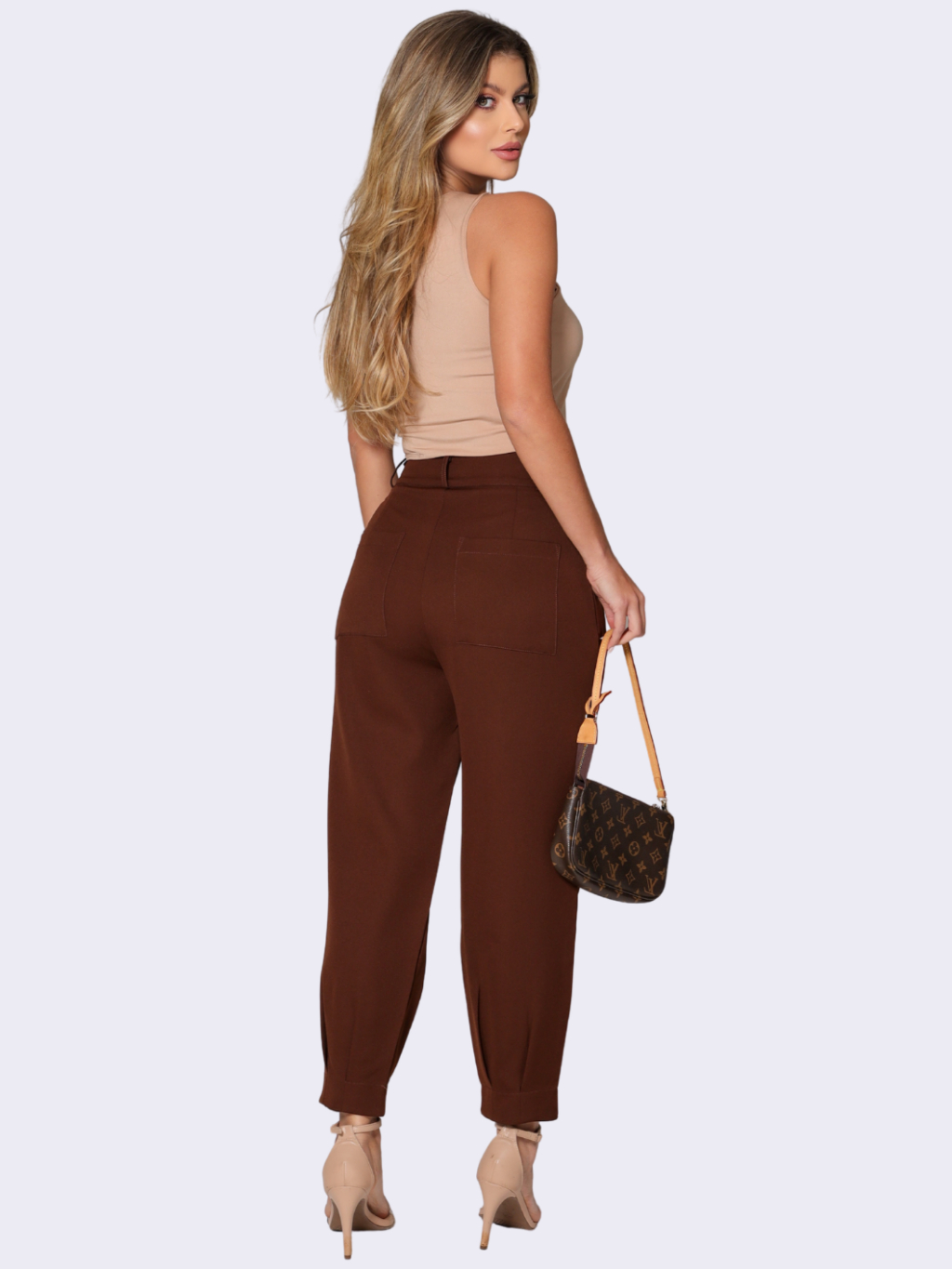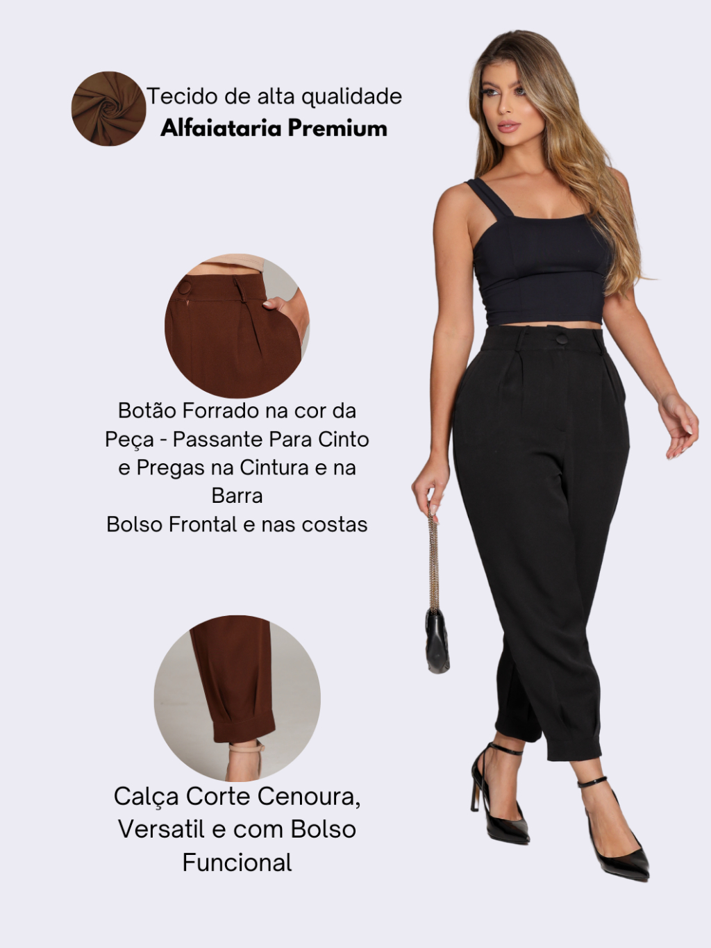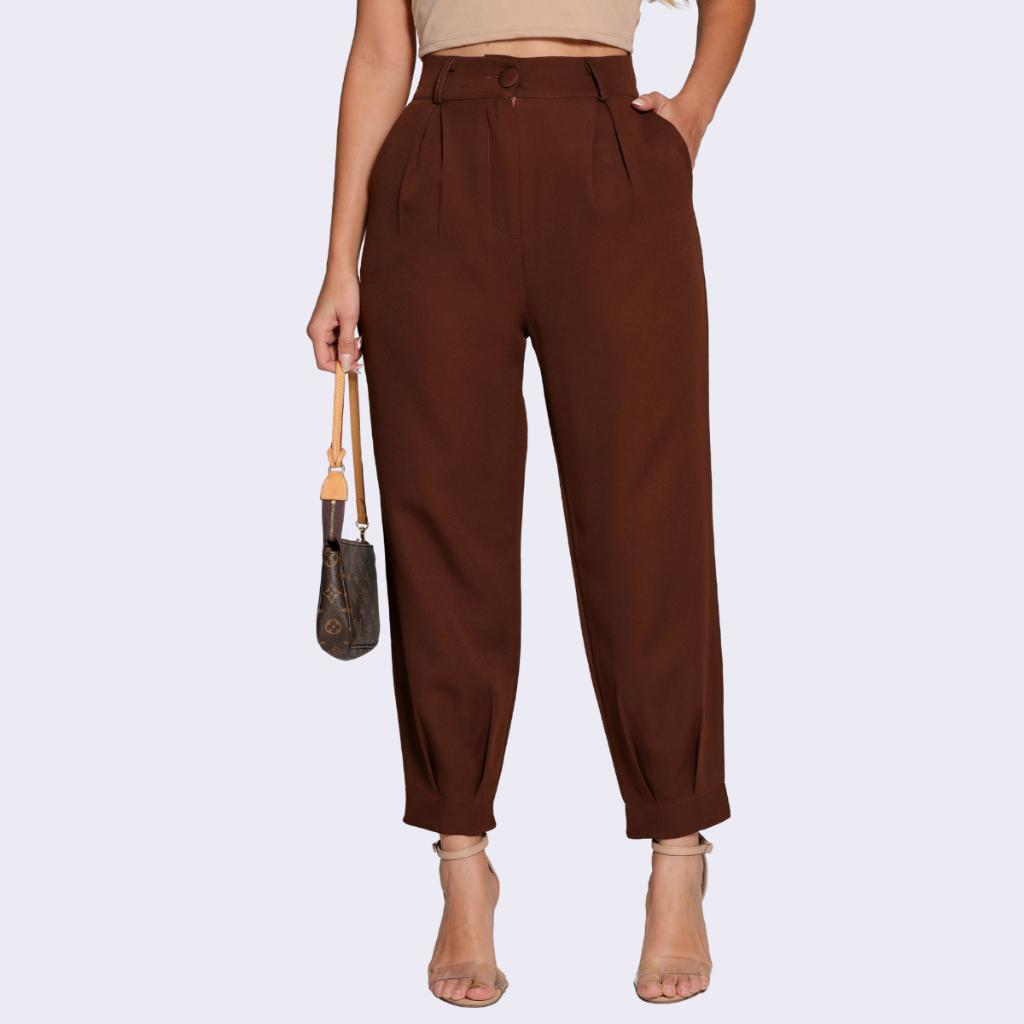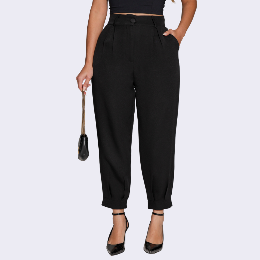 Calça Alfaiataria Feminina Cenoura Casual Basic Skinny Bolso