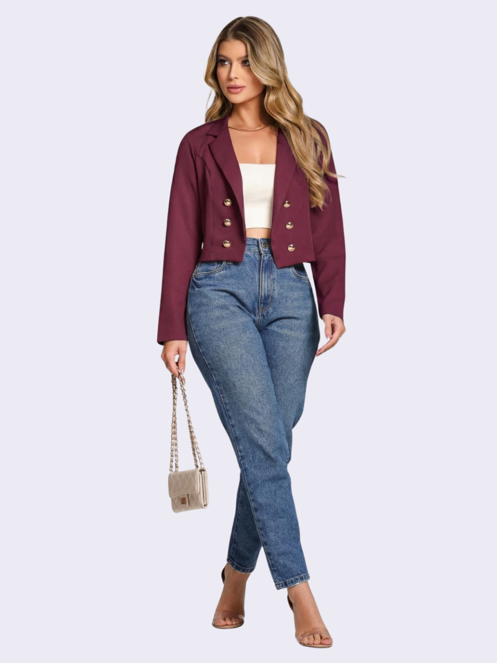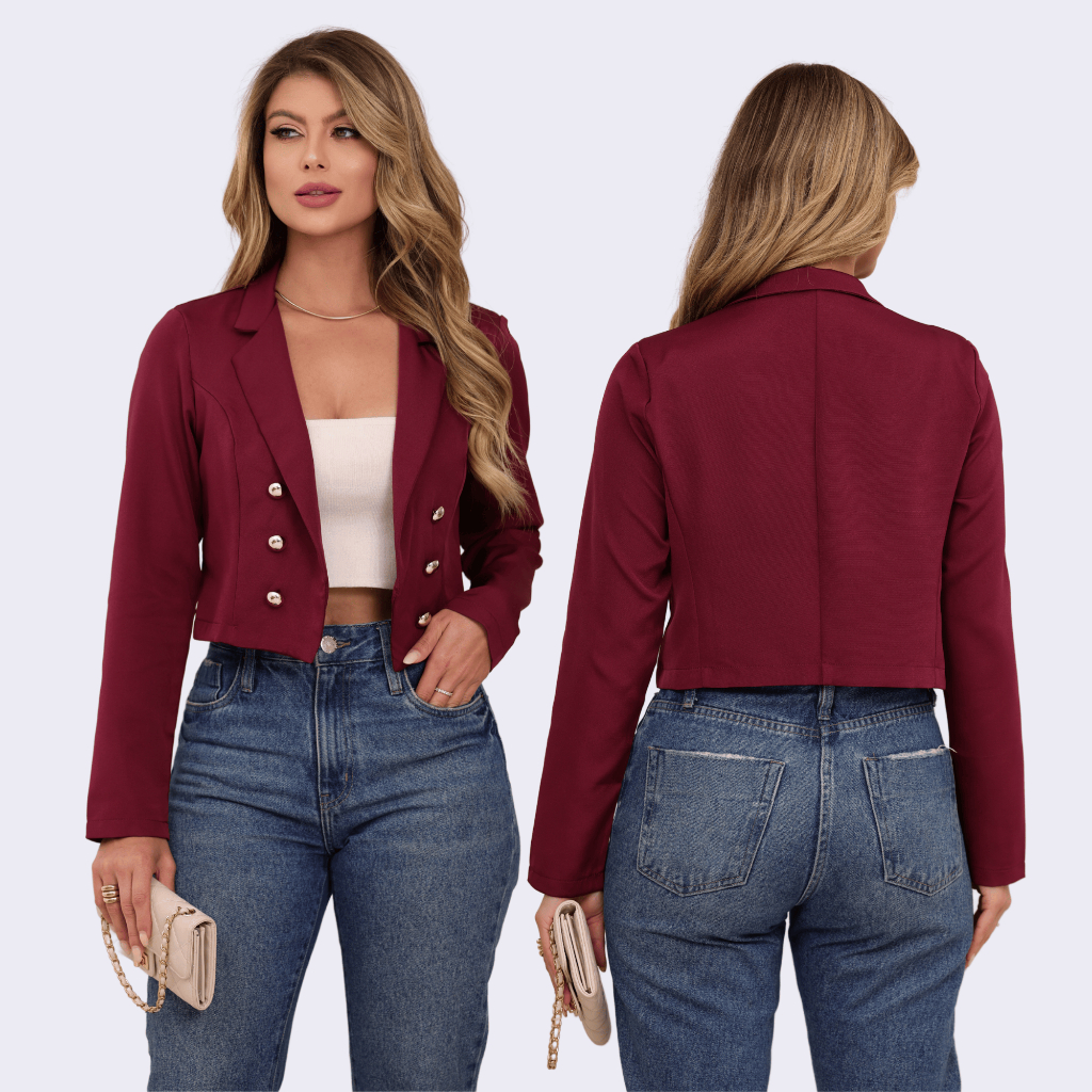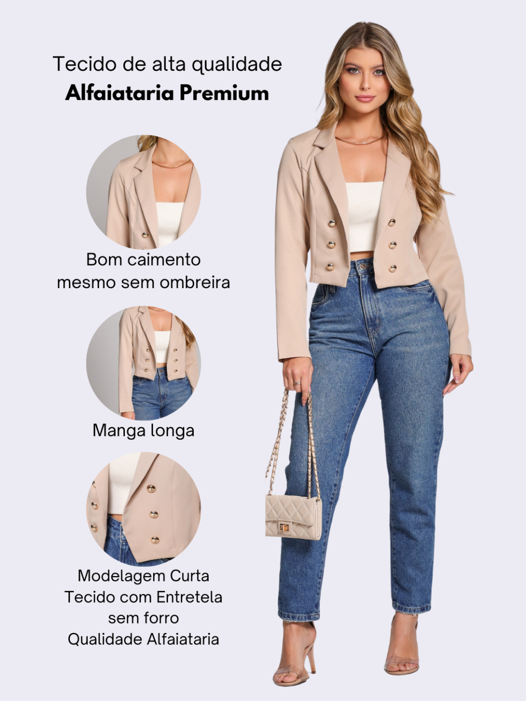 Blazer Feminino Curto Alfaiataria Curto Social Aberto Chic