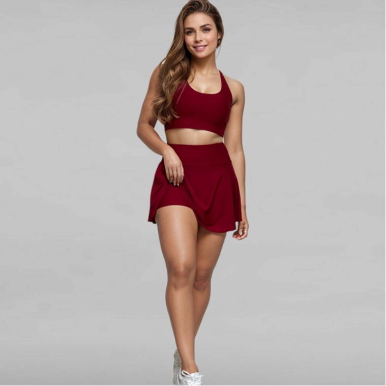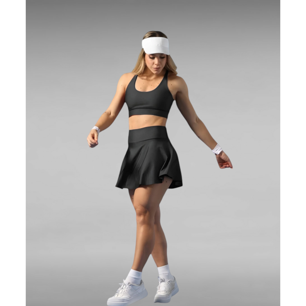 Conjunto Feminino Short Saia e Top Tendência Vôlei Beach Tennis