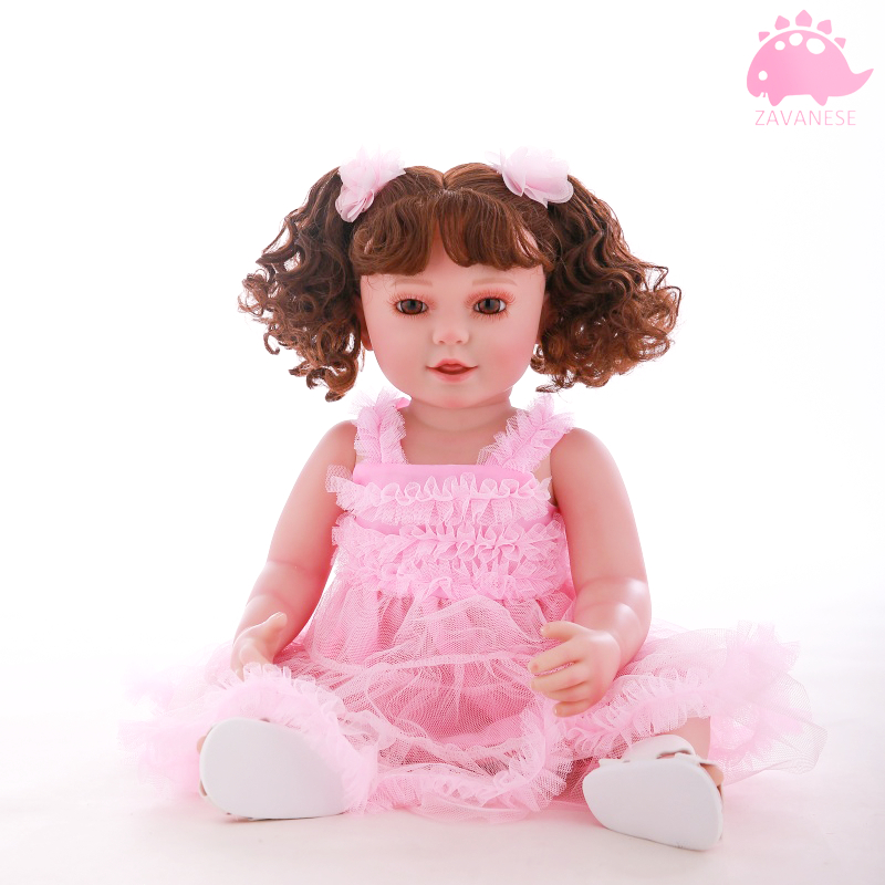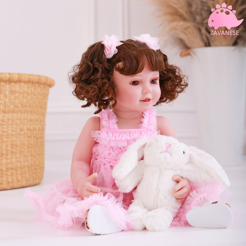 100% silicone rosa rendas vestido reborn boneca curly hair band coelho pequeno ZAVANESE