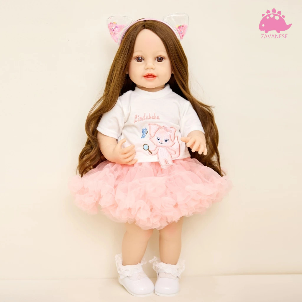 estido rosa marrom cabelo longo renascer realista boneca menina- a primeira escolha para presentes de crianças ZAVANESE