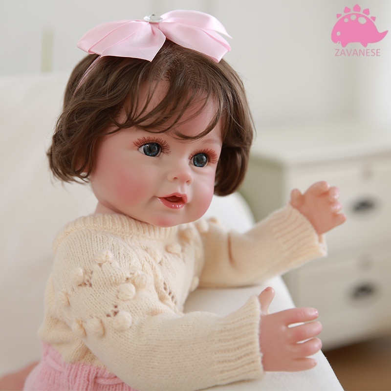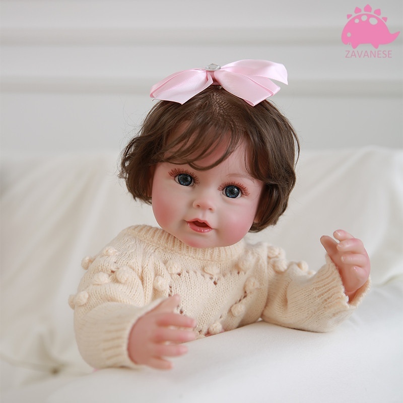 Boneca reborn bonito cabelo curto menina 100% silicone crianças bonecas ZAVANESE