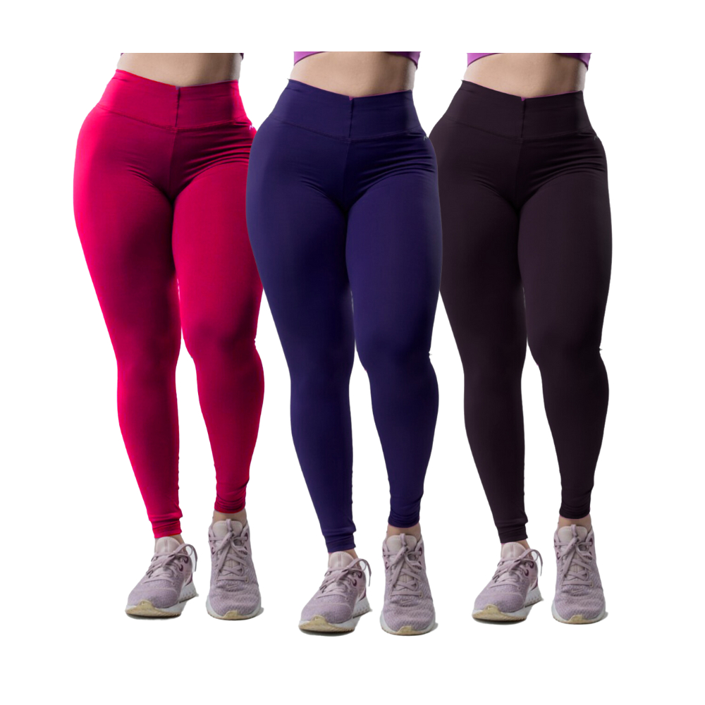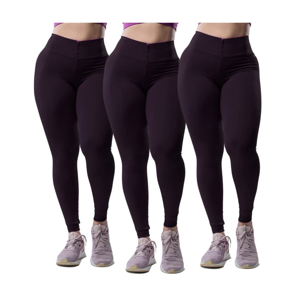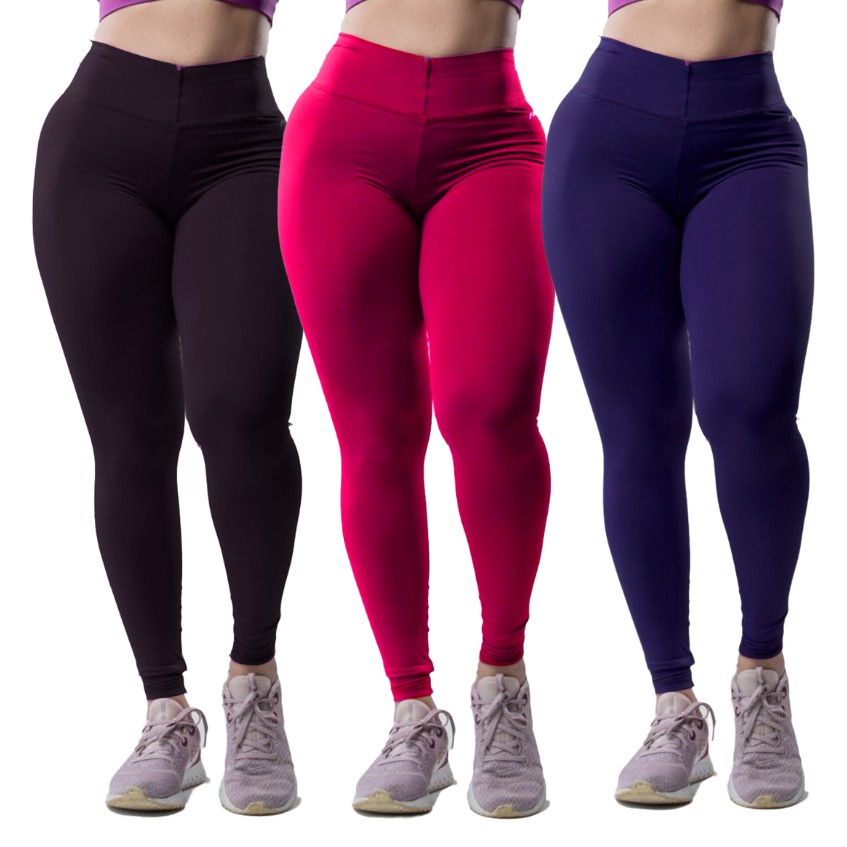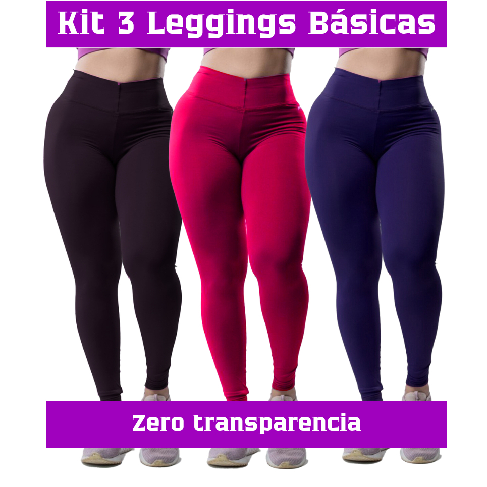 Kit 3 Peças Calça Academia Feminina Legging grossa Compressão Blackout zero Transparência Cós Largo