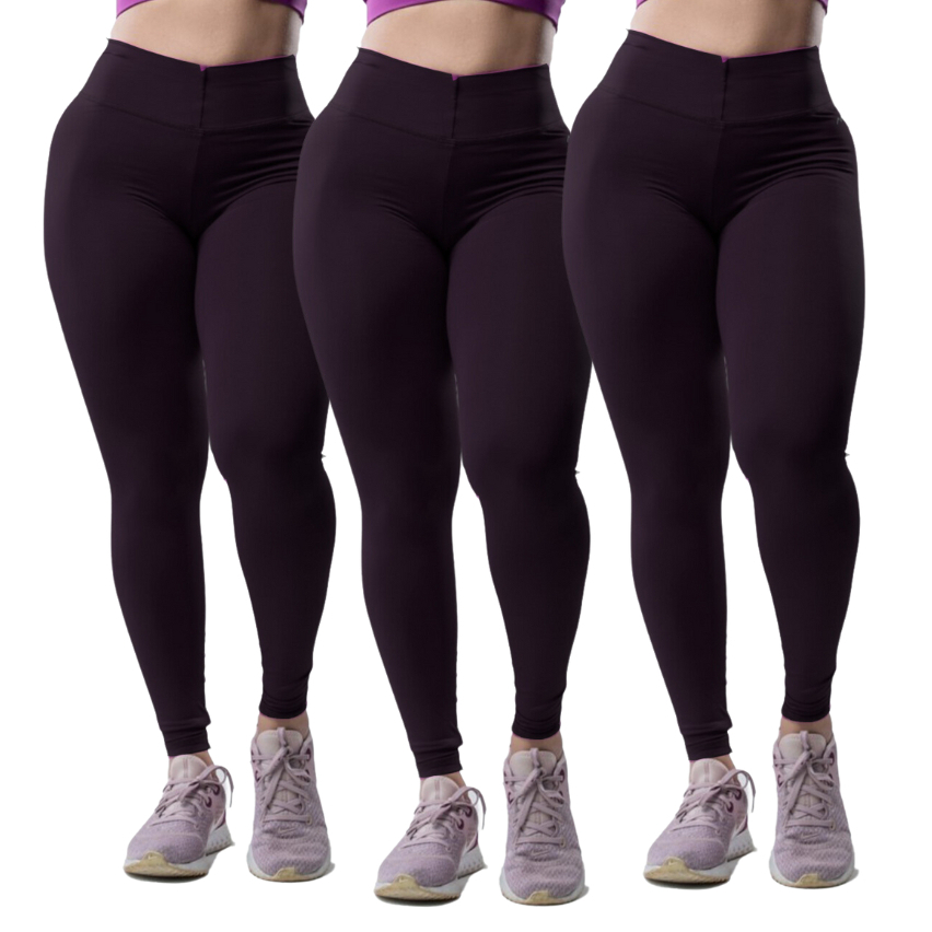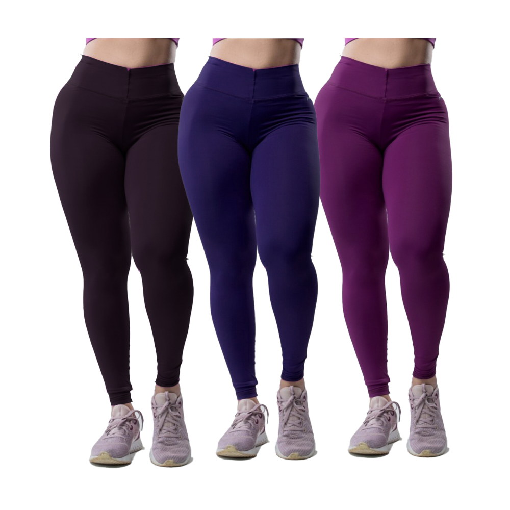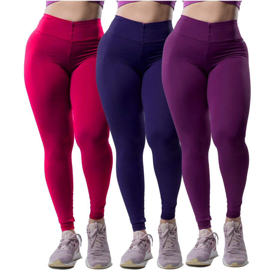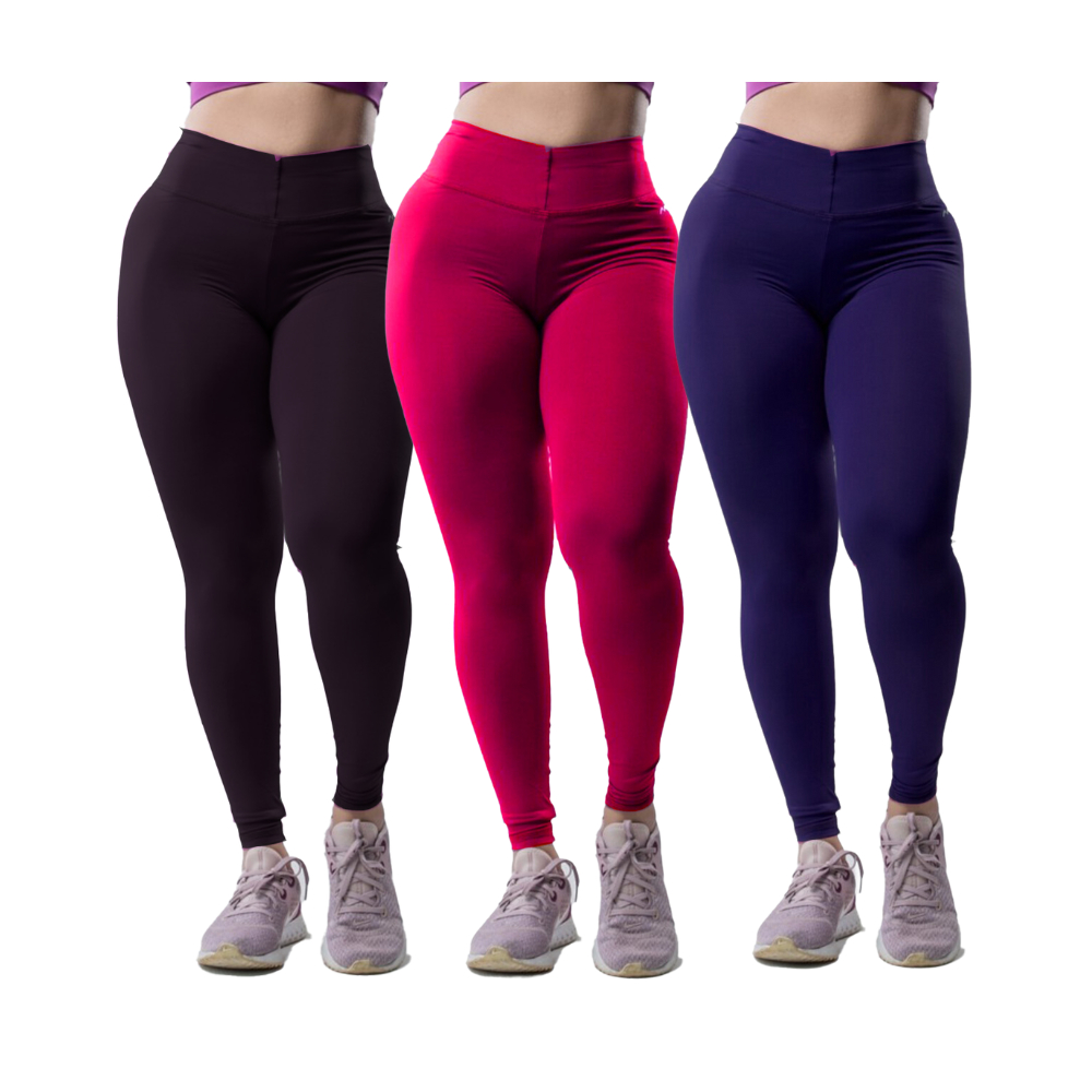 Kit 3 Peças Calça Academia Feminina Legging grossa Compressão Blackout zero Transparência Cós Largo
