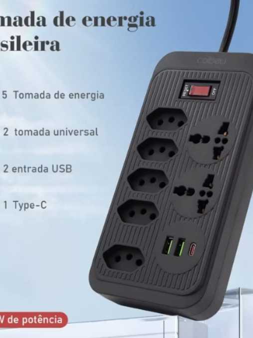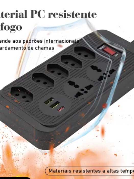 Filtro de Linha, Extensão Tomada, Alimentação de 1,9 metros (PRETO)