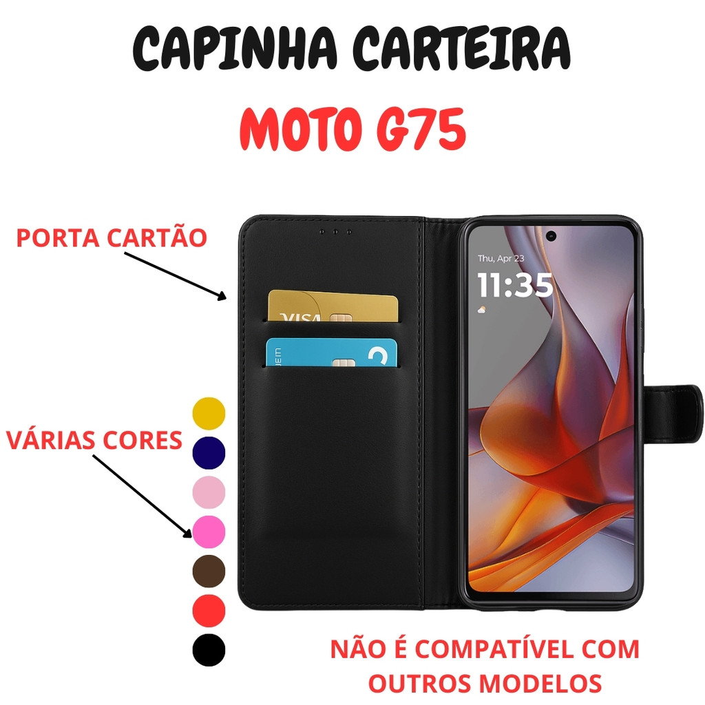 Capa Capinha Carteira Para Motorola G75 + Película de Cerâmica
